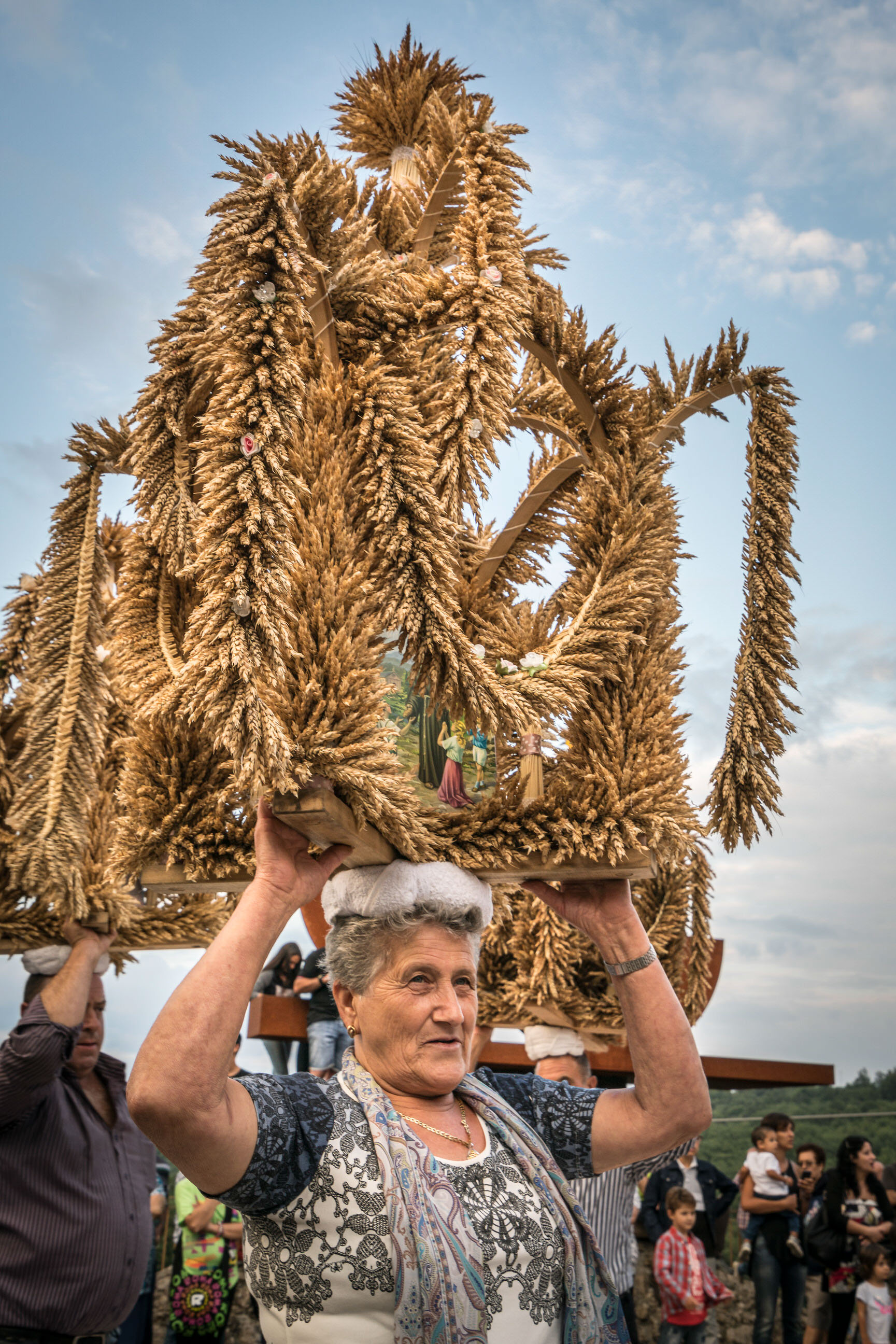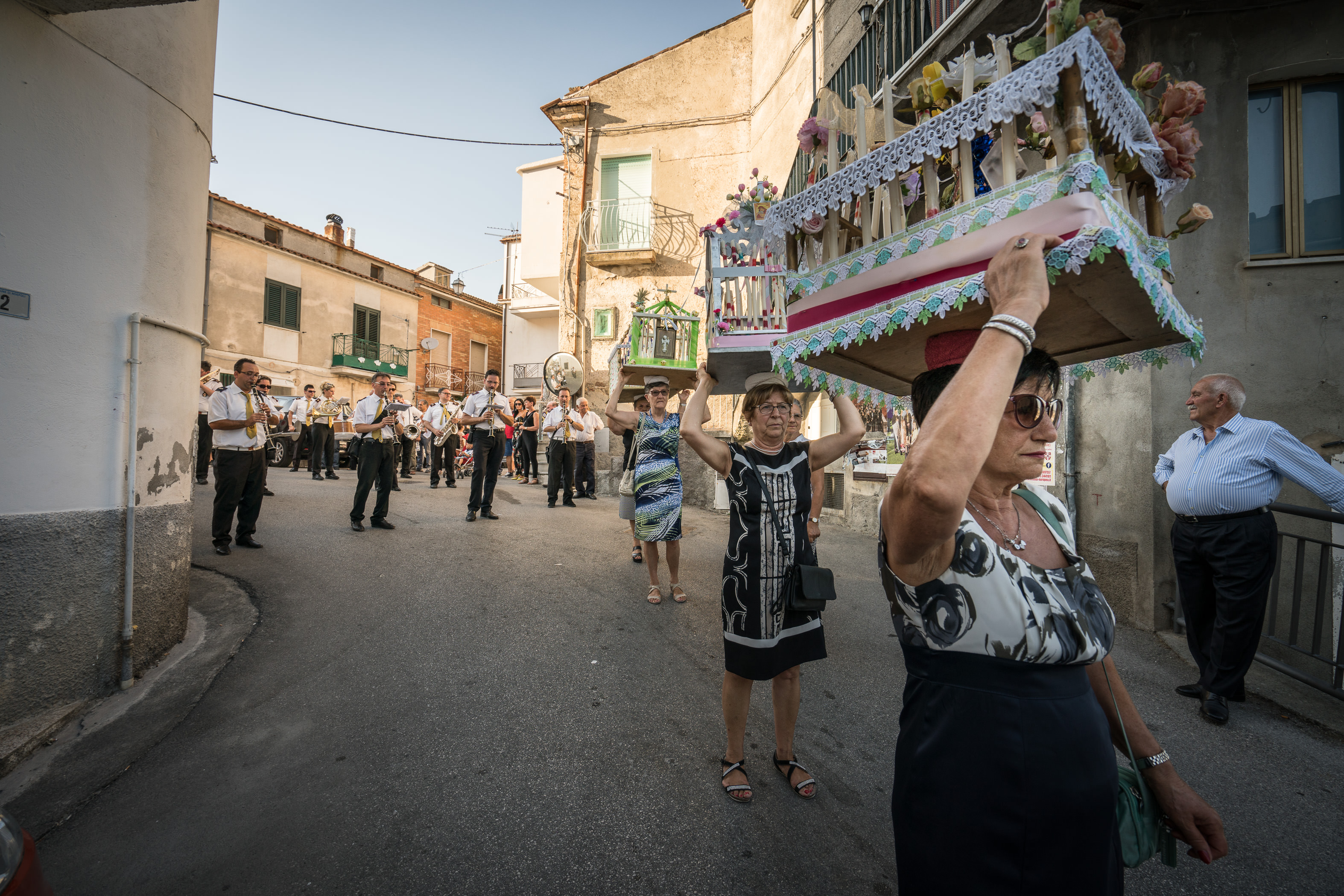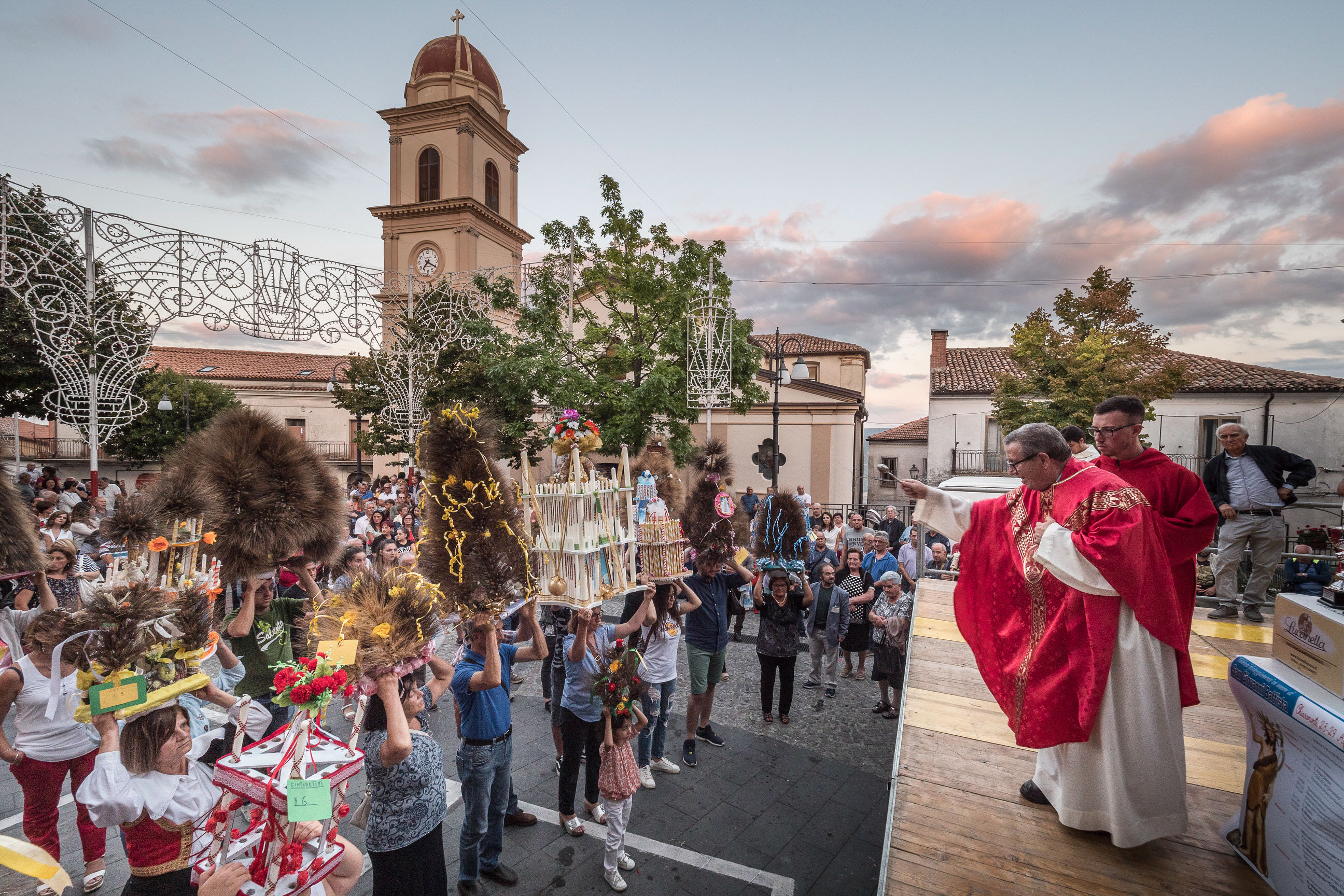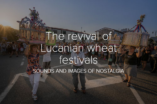 During the month of August, in the southern part of Basilicata, a number of events involving wheat offerings take place during religious festivals dedicated to local patronal saints or to the Madonna. Traditionally, August was the time when most of the main agricultural work would be finished, and people had time and resources to dedicate to religious festivals. Wheat, once the main staple crop of the region, would be harvested in June–July and people would set aside bundles of ears of wheat to carry in procession on saints’ days. Although many people in Basilicata are no longer involved in agriculture, wheat festivals continue to be actively practised and indeed since the 2010s both the number of festivals and attendance have been on the increase.