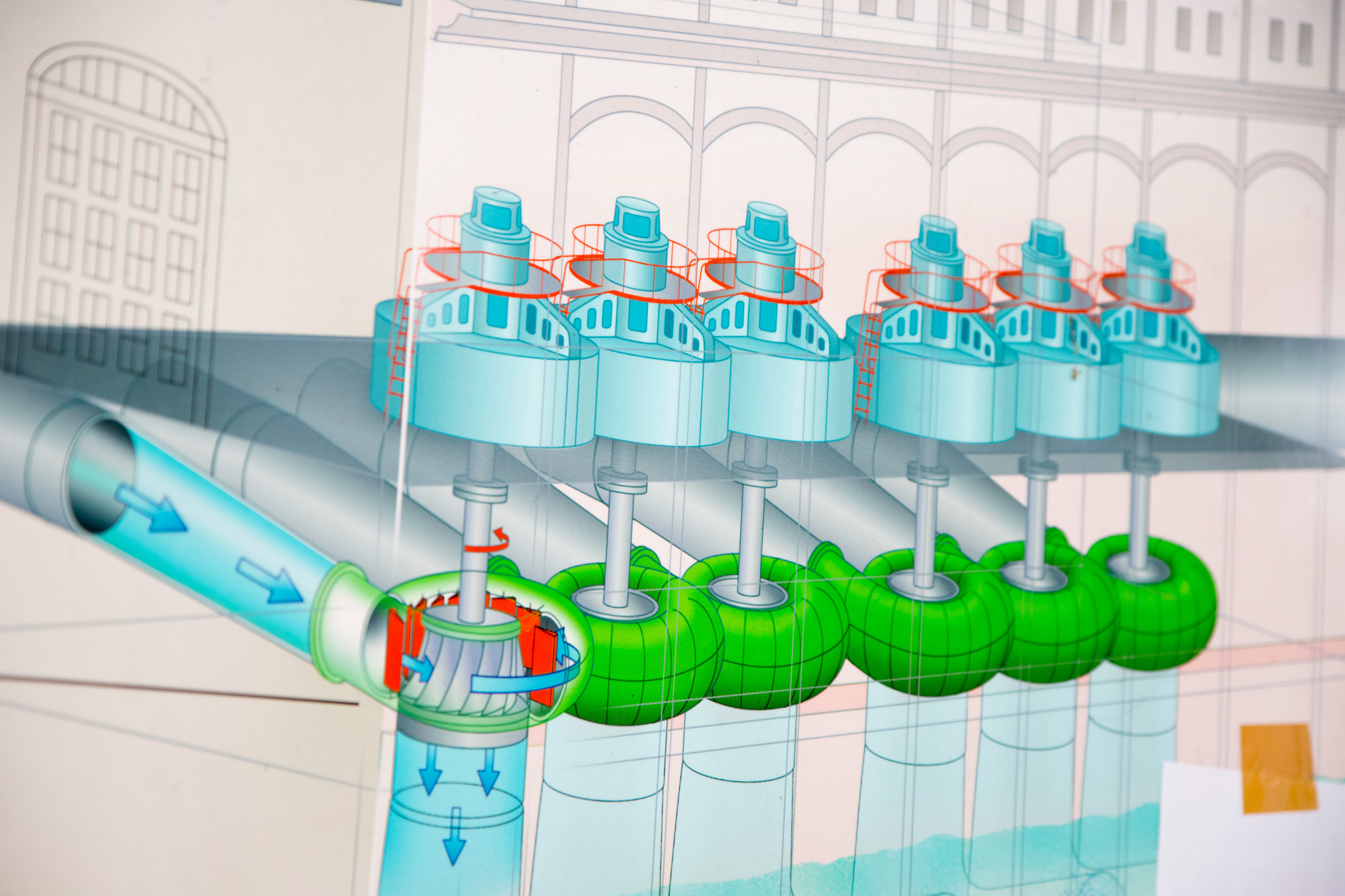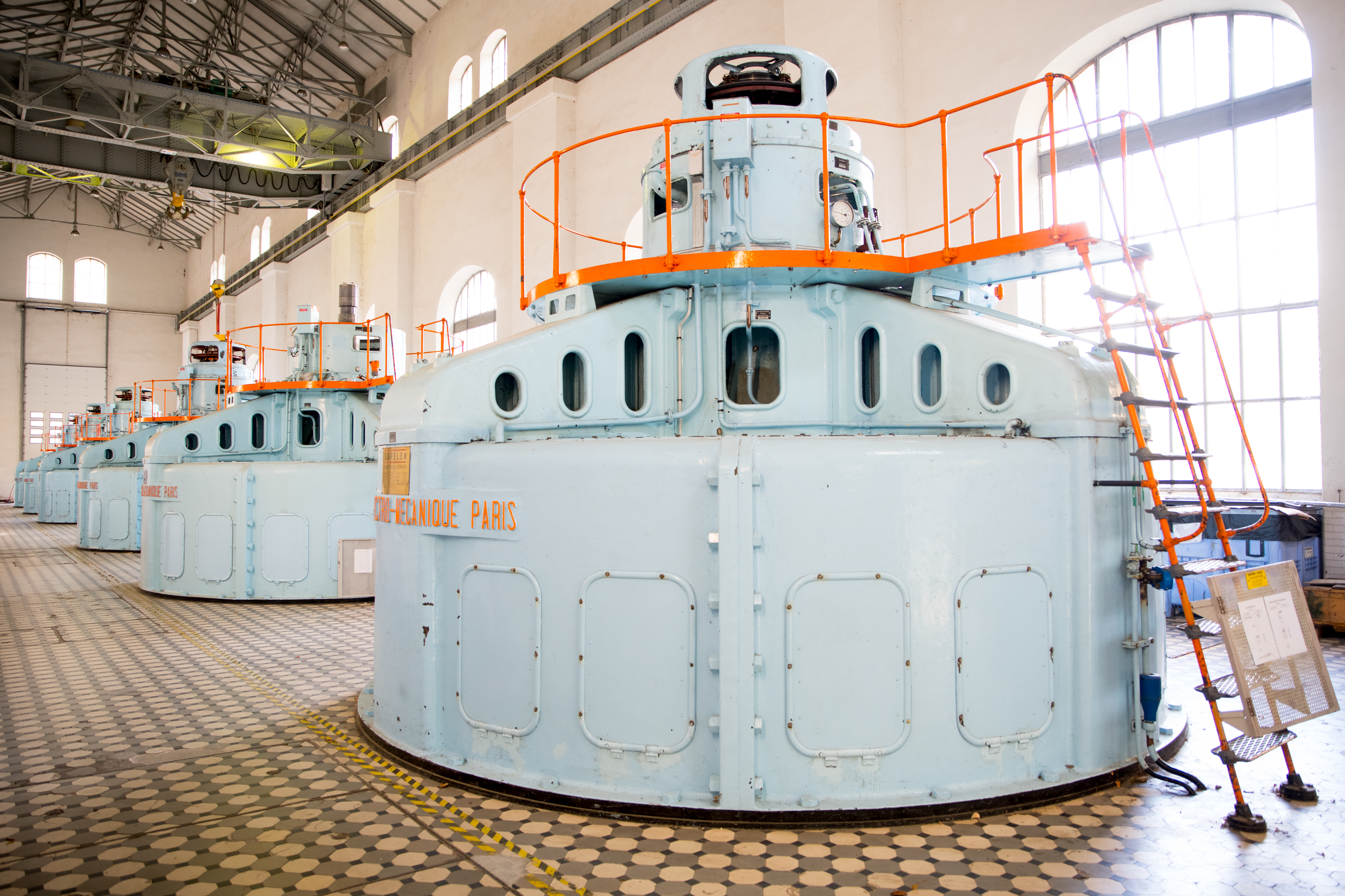 Les 6 turbines, alimentées par les prises d’eau en amont, sont le cœur de la production d’électricité du barrage.