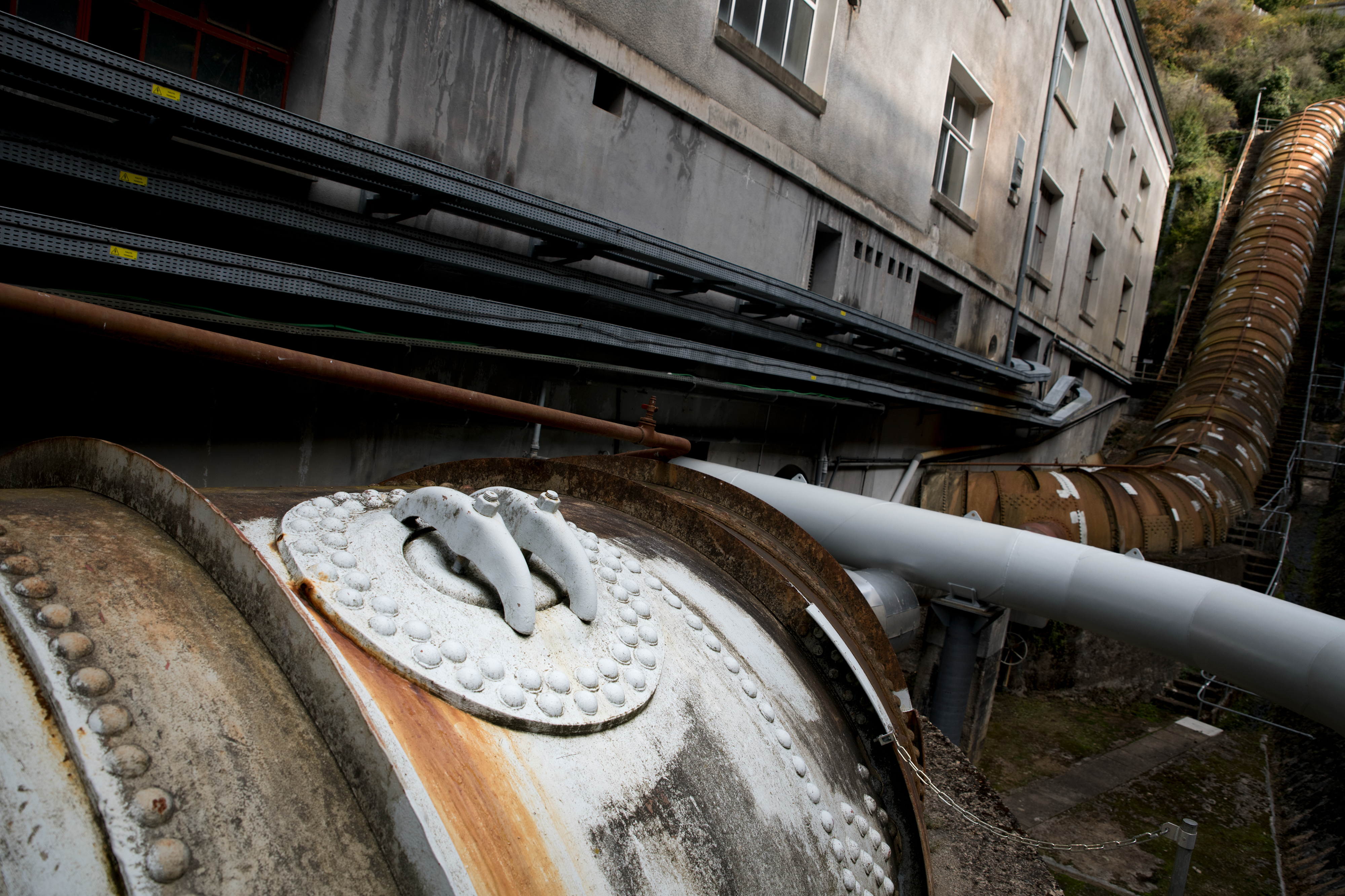 Ces conduites de 4 mètres de diamètre et 45 mètres de chute servent à alimenter les turbines. Tous les 10 ans, comme tous les organes noyés du barrage, elles sont vérifiées de l’intérieur. Une fois les conduites vidées, les cordistes passent par ces trappes appelées « trous d'hommes » pour y pénétrer.