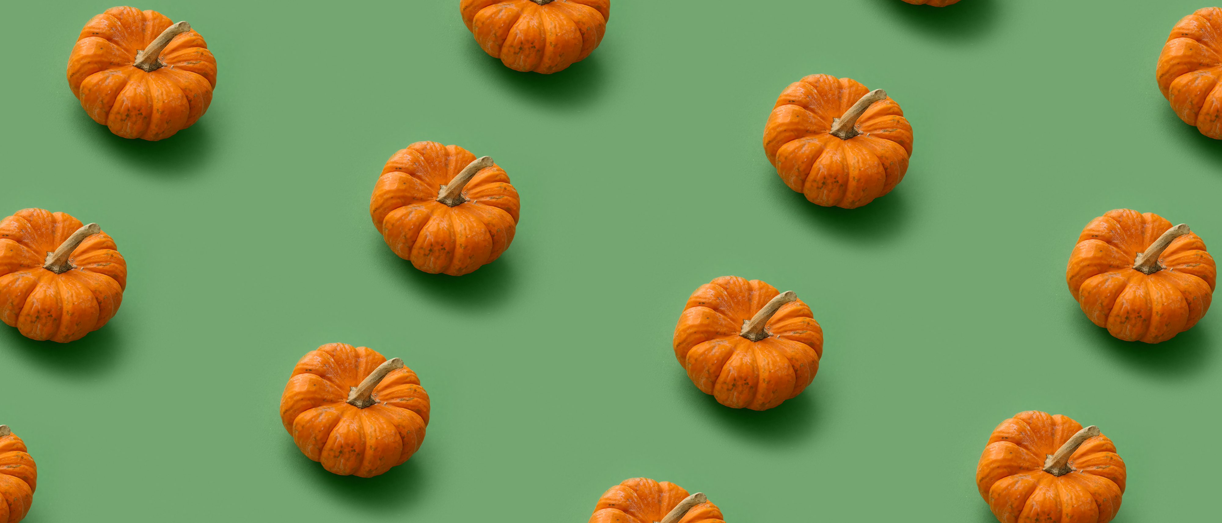 Created with an image by Pixel-Shot - "Many ripe pumpkins on green background. Pattern for design"