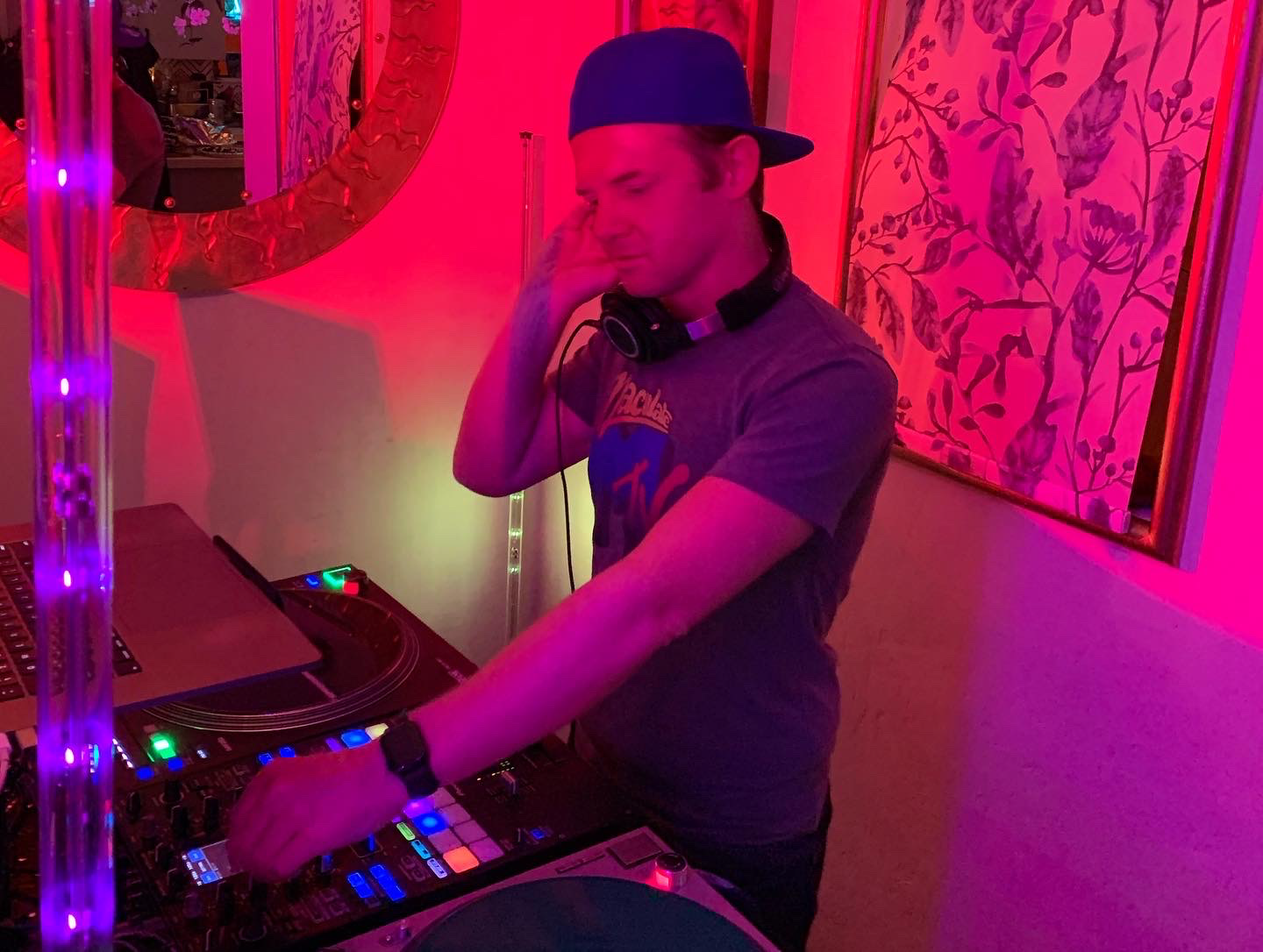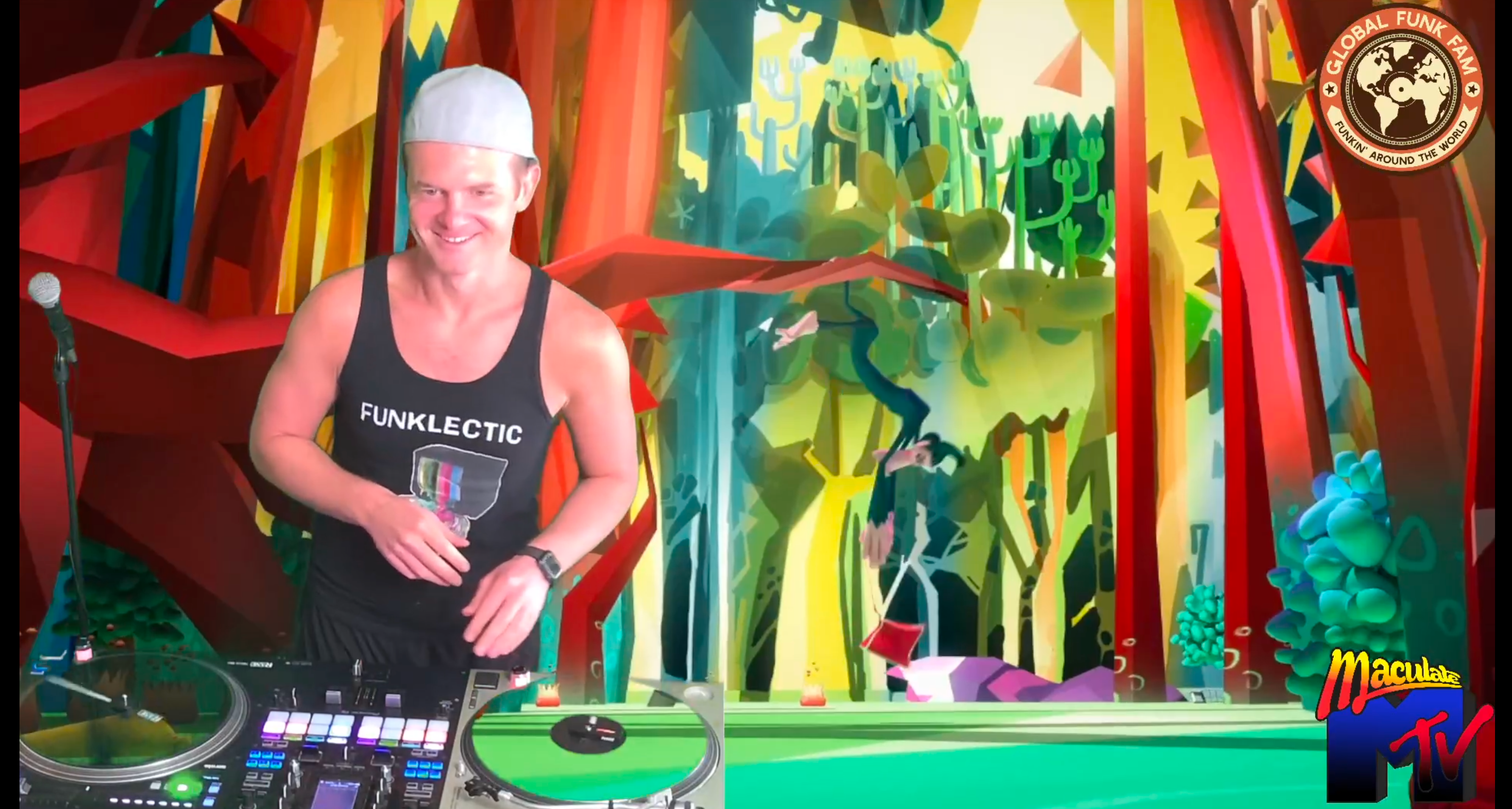 In 2020, Mac created Funklectic, a weekly party on Twitch that has grown to become a global phenomenon over the past 100 plus weeks, featuring some of the best DJs from across the planet including Krafty Kuts, A. Skillz, The Nextmen, Stickybuds, Father Funk, Fort Knox Five The Gaff, and hundreds of others. In 2022/2023, Maculate threw the first Funklectic shows in person headlined by A. Skillz and Slynk in Canada and San Francisco. Funklectic epitomizes Maculate’s musical philosophy: Positive vibes with a core of Funk expertly mixed in an eclectic blend of Party-Rocking Bass, Soul, Hip Hop, House, Breaks and Drum and Bass. Over the past two years on Twitch, Mac has built a loyal global audience of 9,000 followers thanks to his one-of-a-kind audio/visual shows, relentless energy, and dozens of unique themes. With nearly 20 years DJing and 9,000+ Music Videos in his Serato Crates, Maculate is comfortable playing any style in order to deliver an experience for his audiences that won’t ever be forgotten.