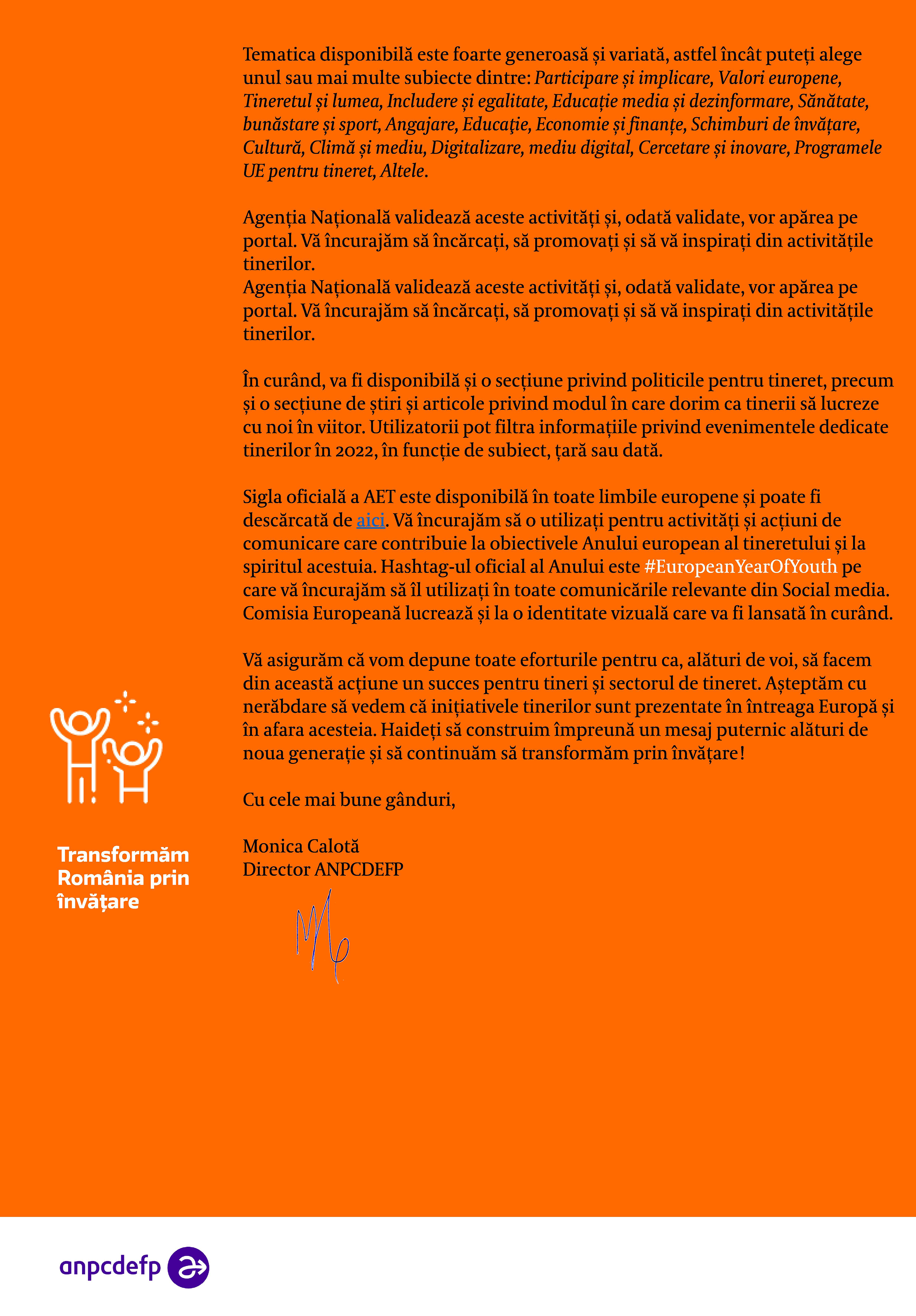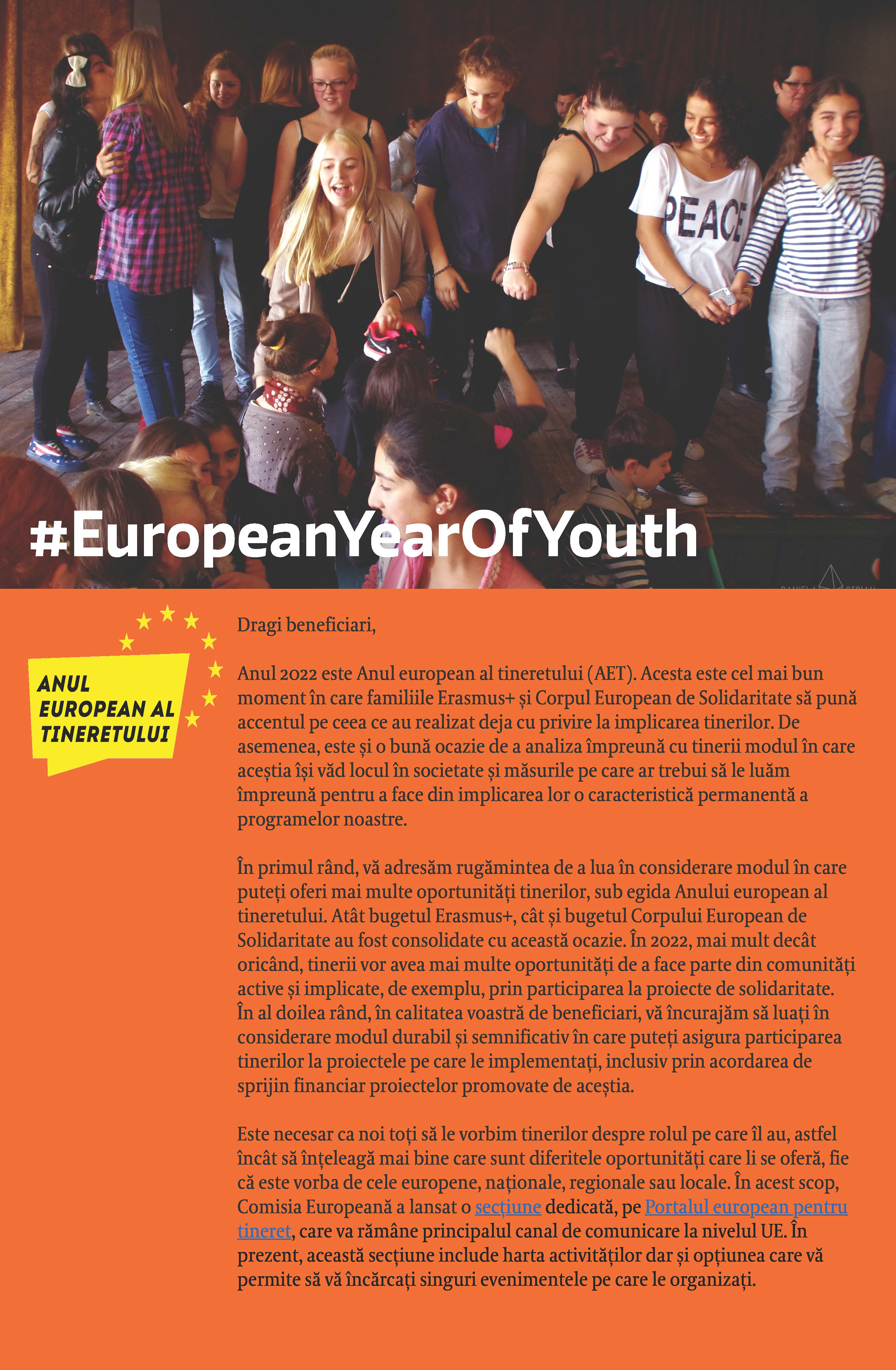 Link-urile menționate în text sunt: secțiunea dedicată Anului European al Tineretului pe Portalul european pentru tineret și elementele de identitate vizuală.