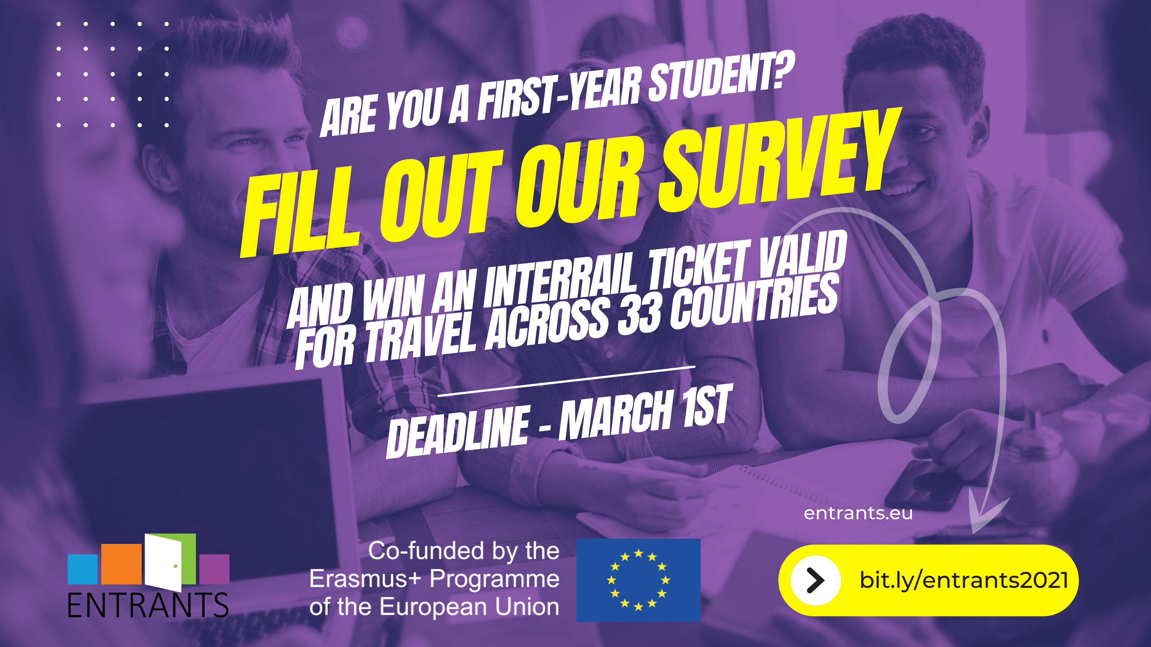 În cooperare cu Uniunea Studenților Europeni, proiectul Erasmus+ ENTRANTS își propune să ofere măsuri de sprijin pentru a crește integrarea socială și academică a studenților începători pentru a preveni și pentru a combate abandonul școlar.