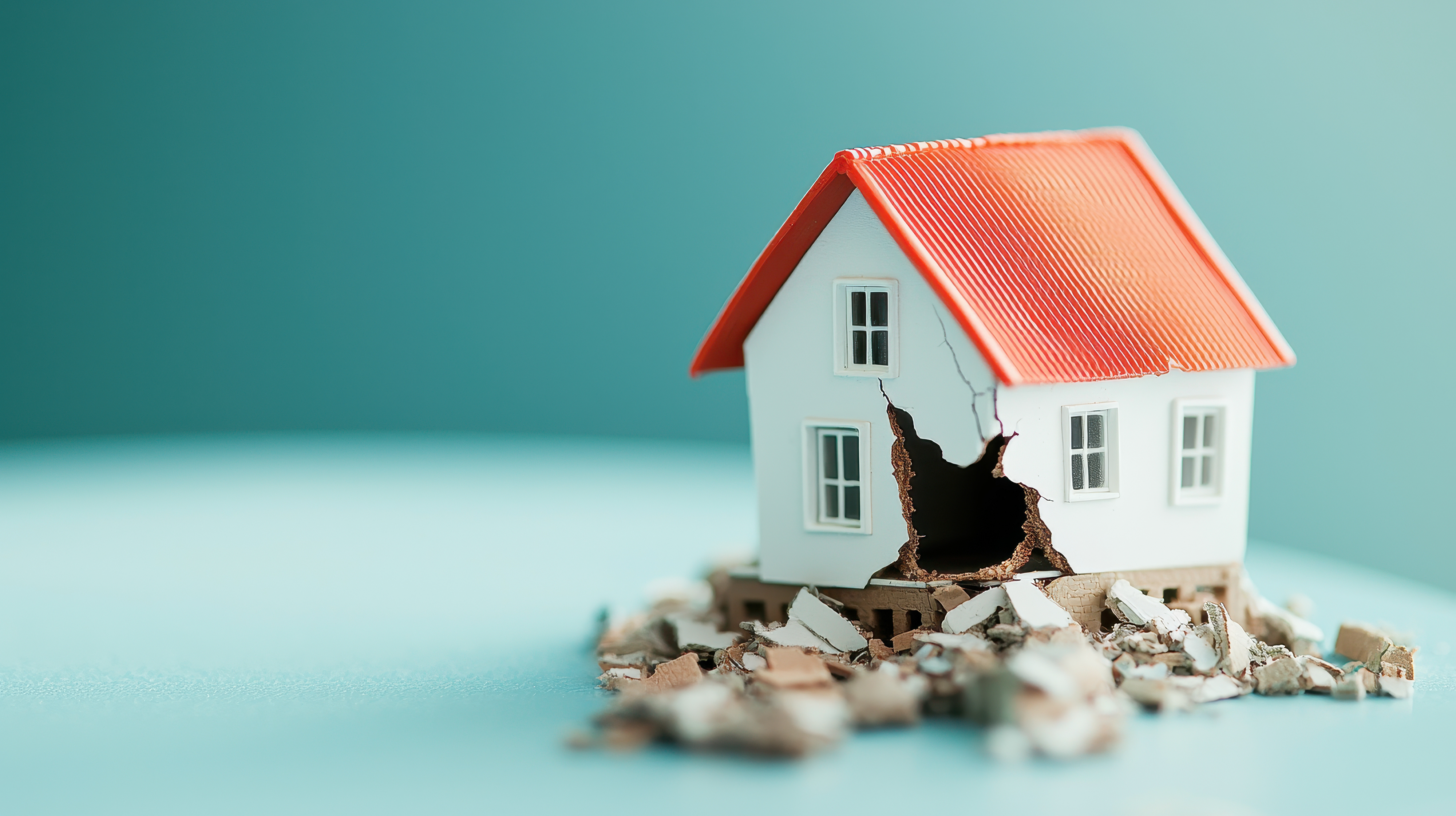 使用した画像の情報 : Sunday Cat Studio - "A miniature house model with cracks and debris symbolizes destruction, vulnerability, and the impact of natural disasters."