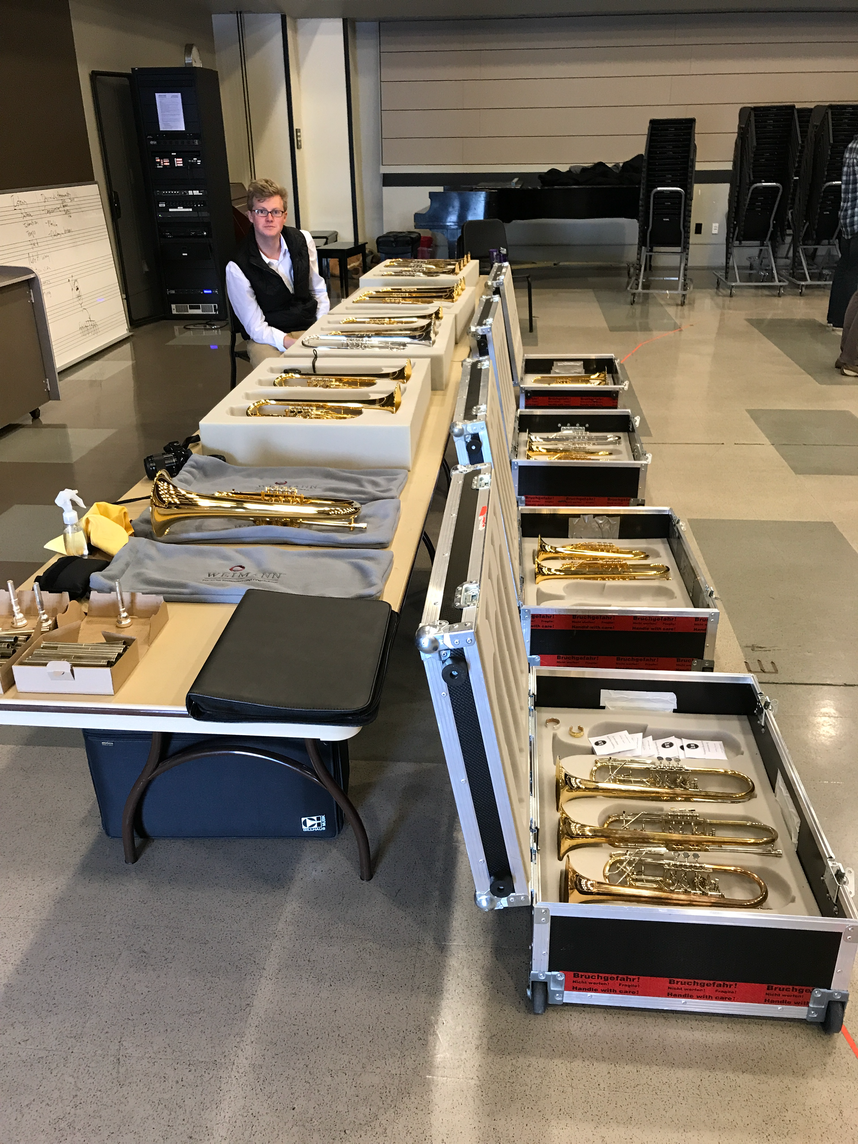 Bach Stradivarius Trumpets from Elkhart, Indiana visited campus and brought an example of every trumpet currently produced. Our trumpet students had the opportunity to try every one of these "industry standard" instruments.