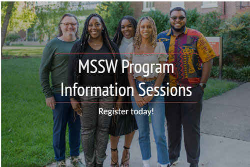 Join our MSSW Program Admissions team to learn more about our top-ranked social work graduate program by attending our series of virtual information sessions. These sessions will provide you opportunities to learn more about our unique program offerings, meet our team, and hear from graduates and other guest speakers. You will learn more about how to apply. Please register to attend as many sessions of interest.