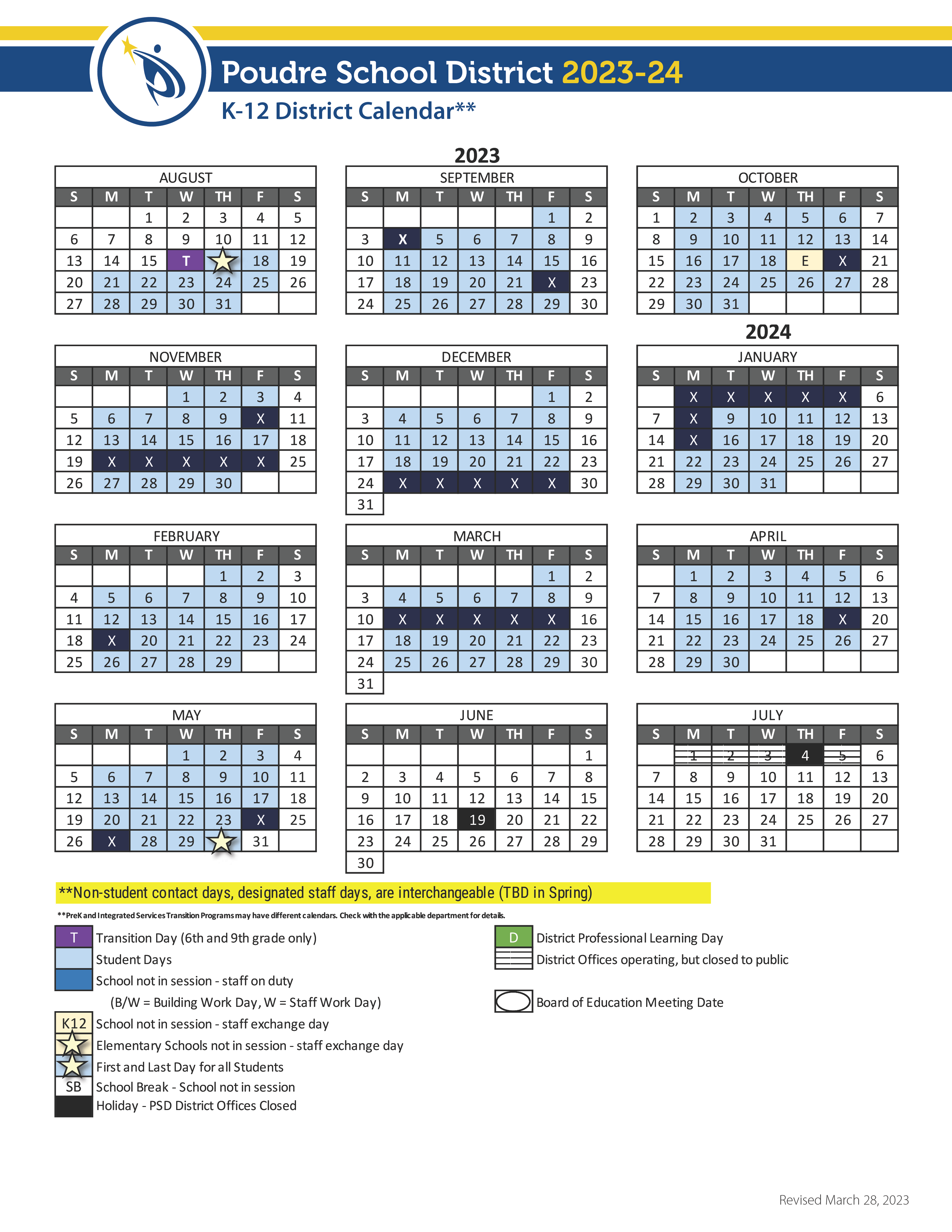 Calendar for the 2023-24 School Year