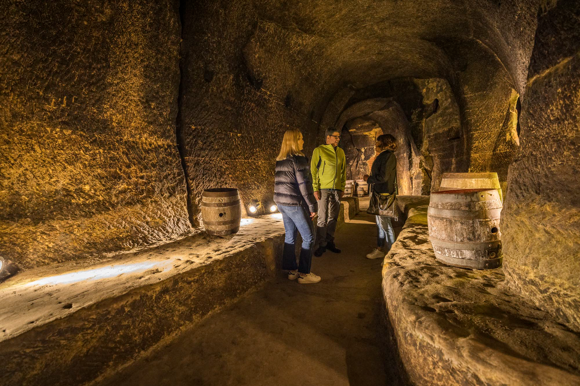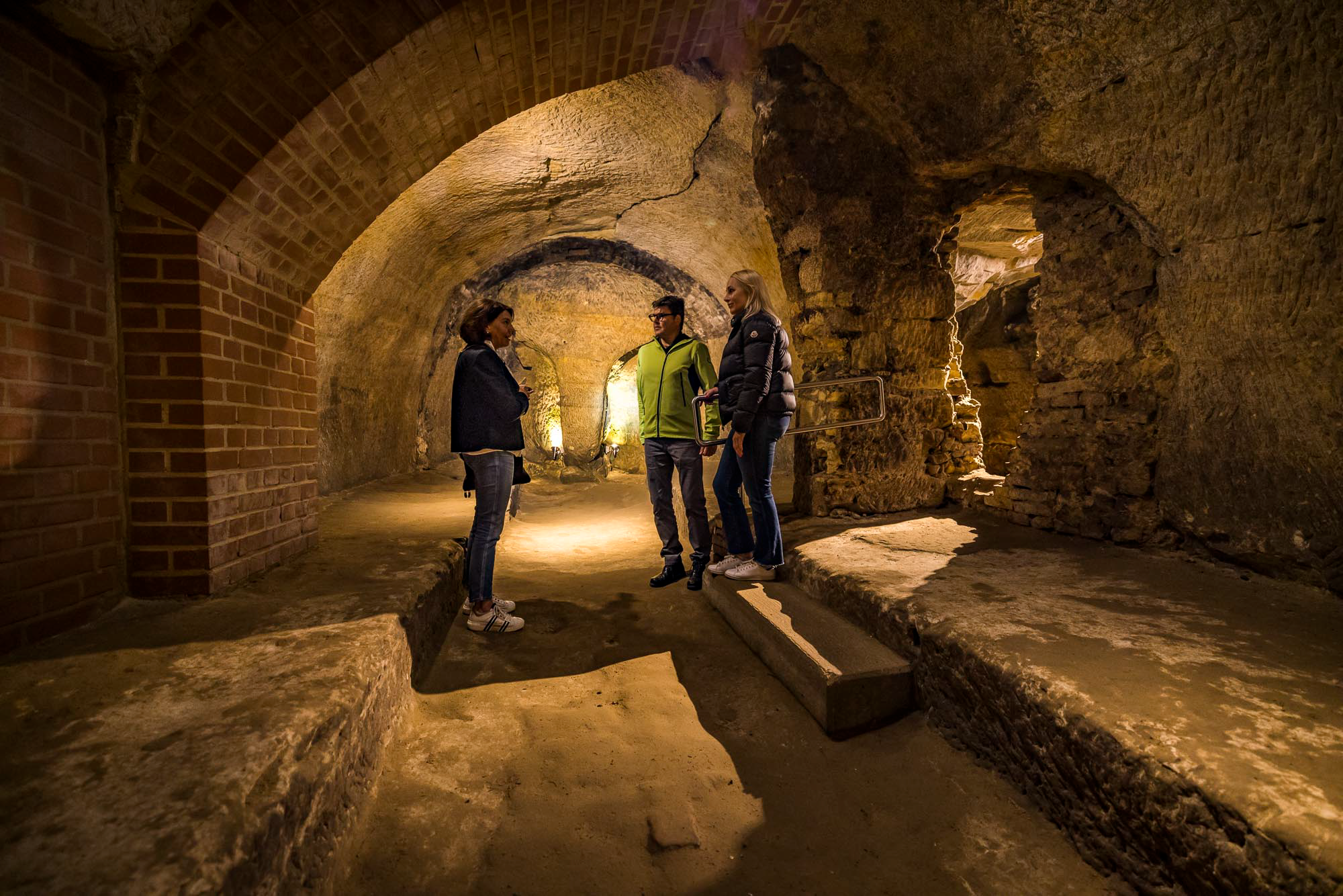 Kurz darauf empfängt uns unsere Gästeführerin Anna Wilhelm vor der Touristinformation, um uns durch die Stadt zu begleiten. Mit großer Begeisterung führt sie uns durch die Straßen. Begleitet von ihren fachkundigen und besonders fesselnden Erzählungen zur Stadtgeschichte erkunden wir die eindrucksvolle Kirche St. Jakob mit ihren zwei Kirchturm-Uhren, bevor wir das faszinierende Felsenkellerlabyrinth betreten.