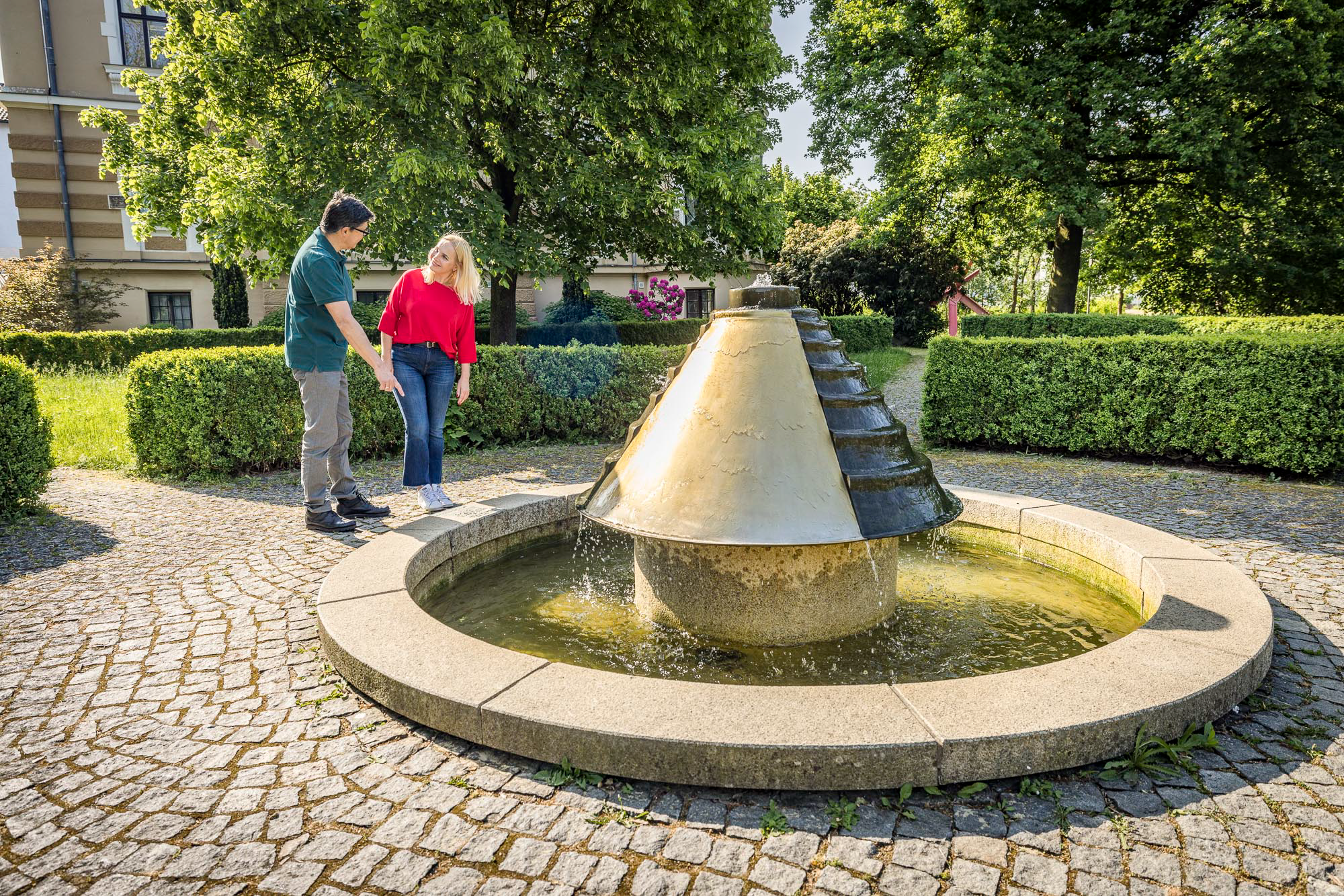 Unser erstes Ziel ist das Oberpfälzer Künstlerhaus in der Kebbel-Villa im Ortsteil Fronberg mit seinem beeindruckenden Skulpturenpark, der das historische Anwesen aus der Gründerzeit umgibt.