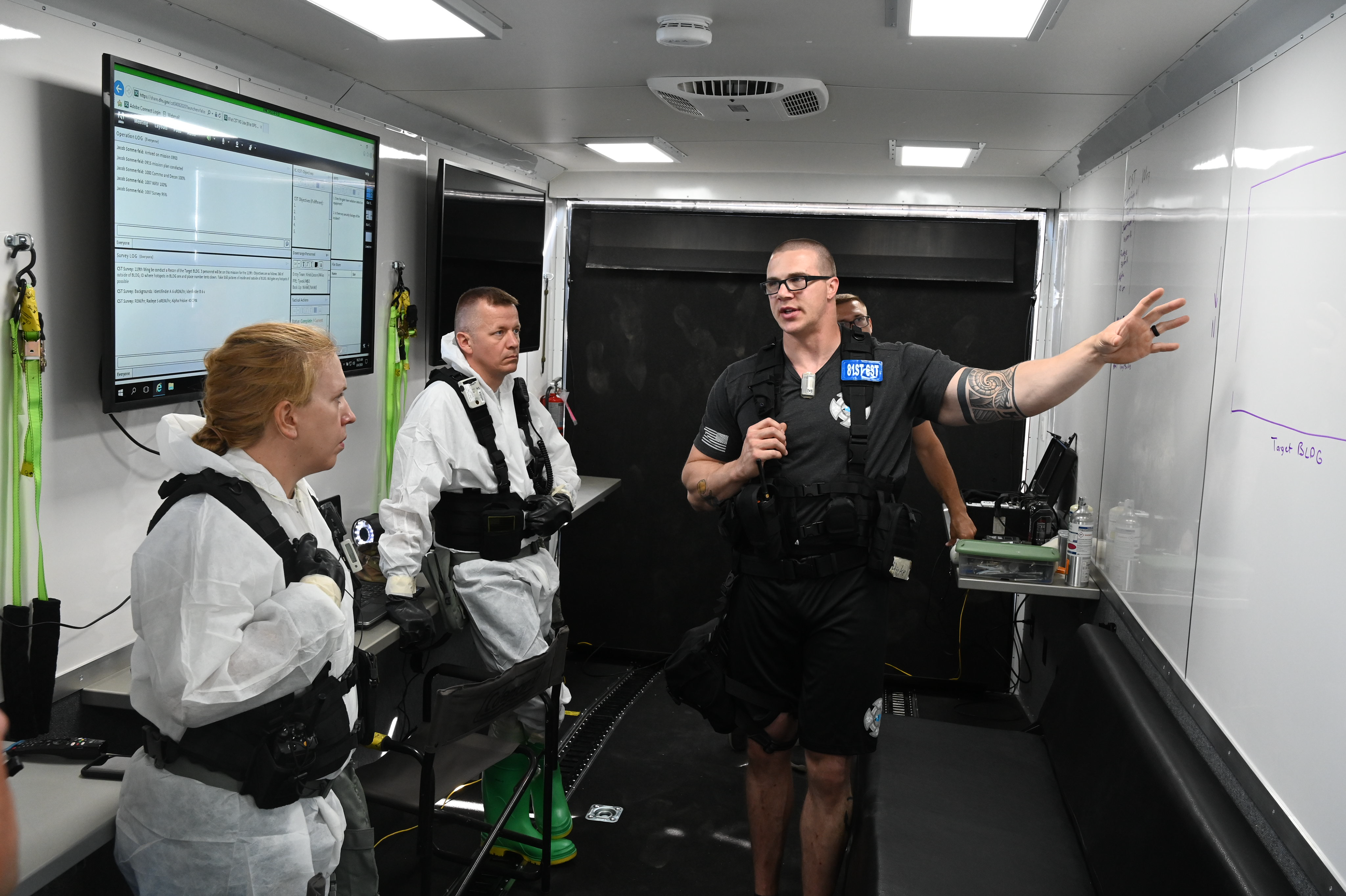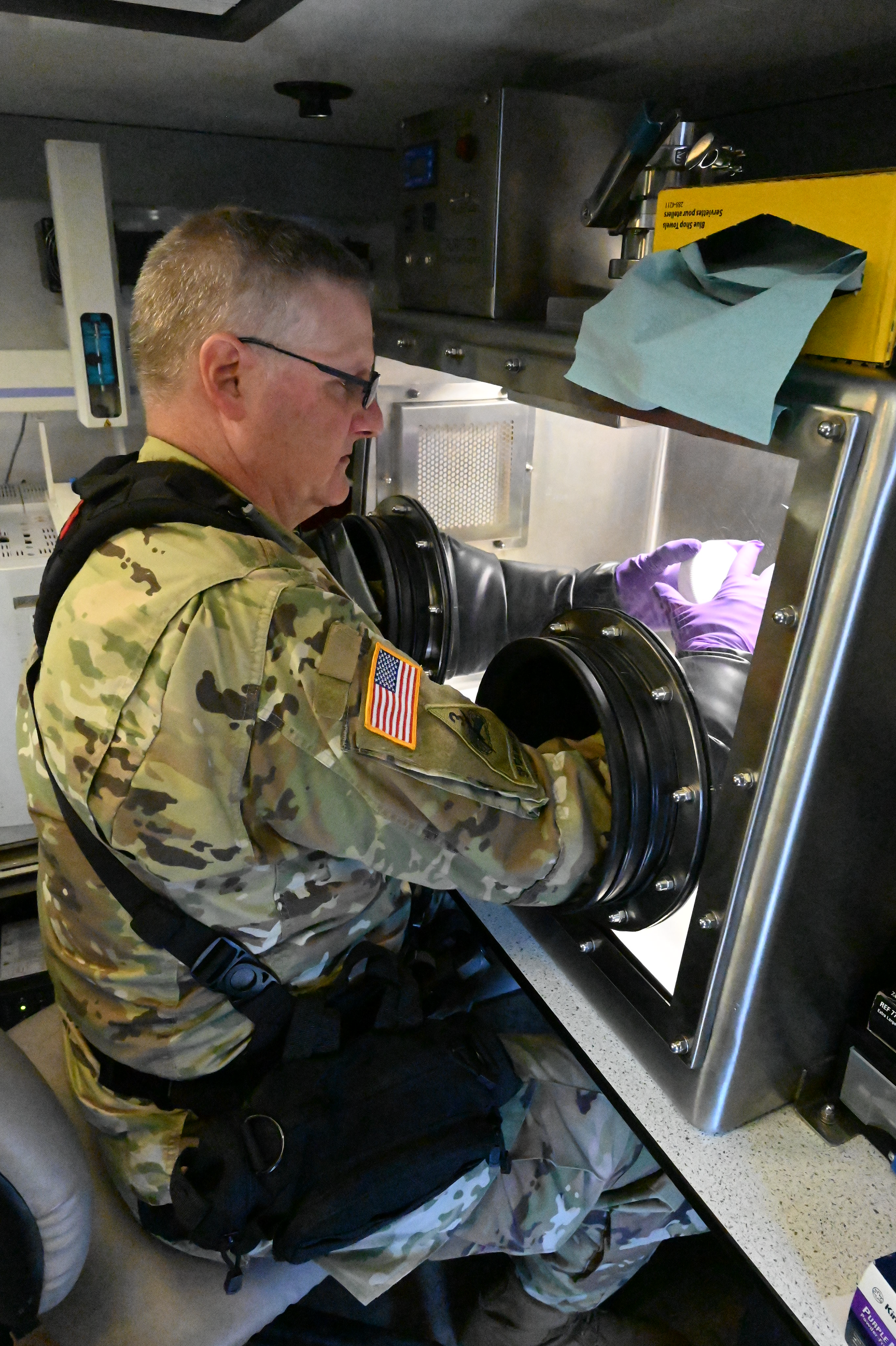 The 119th Wing emergency management personnel teamed up with members of the N.D. National Guard 81st Civil Support Team for a hazardous material detection exercise as part of exercise Vigilant Guard 2020. The exercise was conducted on Aug. 4, 2020 at the Air National Guard Base in Fargo. (U.S. Air National Guard story and photos by Chief Master Sgt. David H Lipp)