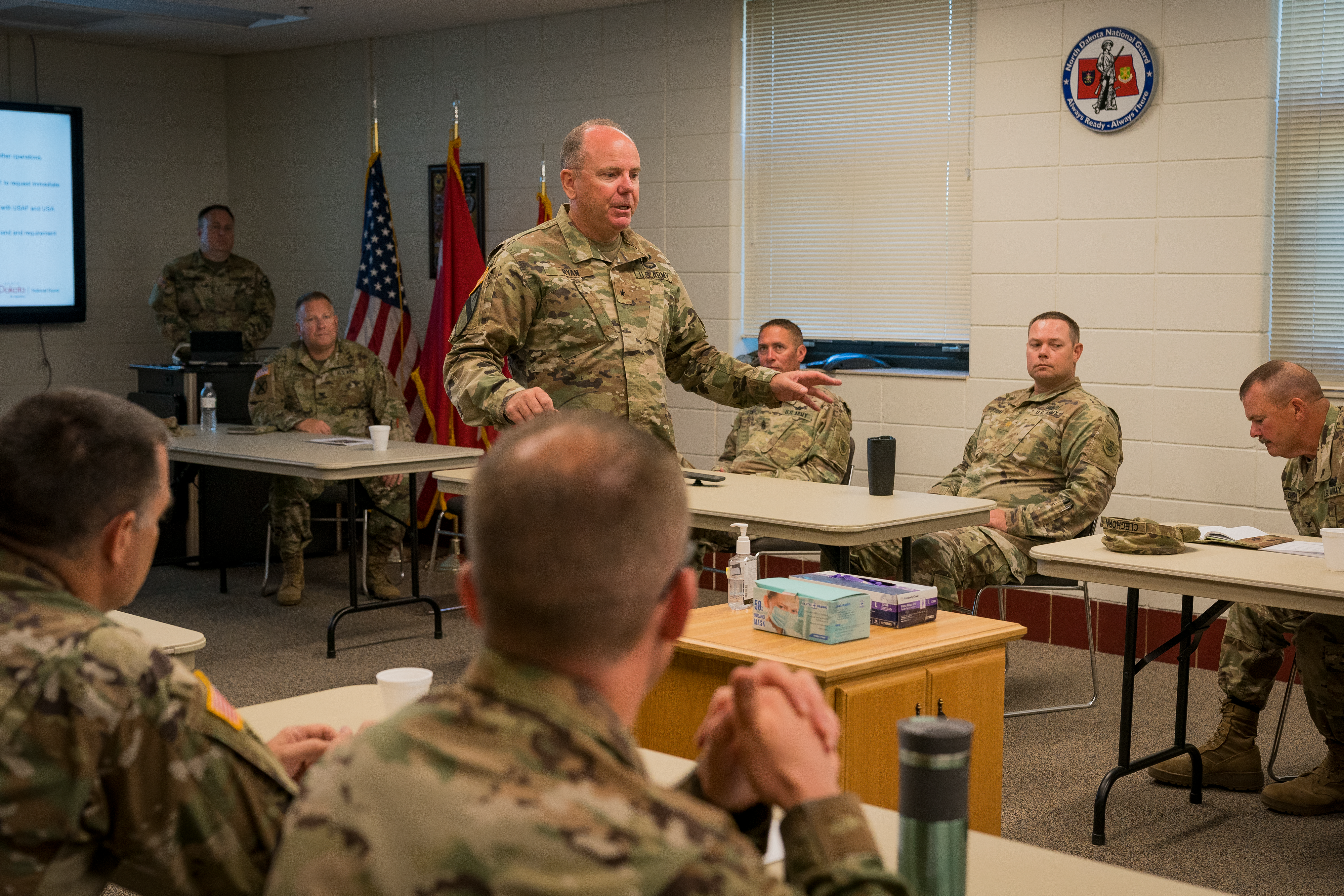 The N.D. National Guard began the Vigilant Guard 2020 exercise with a Dual Status Commander (DSC) summit with senior leaders. The goal of the summit was to ensure all members understood the DSC purpose, design, limitations and implementation. The summit was led by officers certified as DSCs, Brig. Gen. Leo Ryan, Army commander for the N.D. National Guard and Col. Rob Fugere, G-3 operations and training officer. (National Guard story and photos by Sgt. 1st Class Charles Highland, N.D. National Guard Public Affairs Office)
