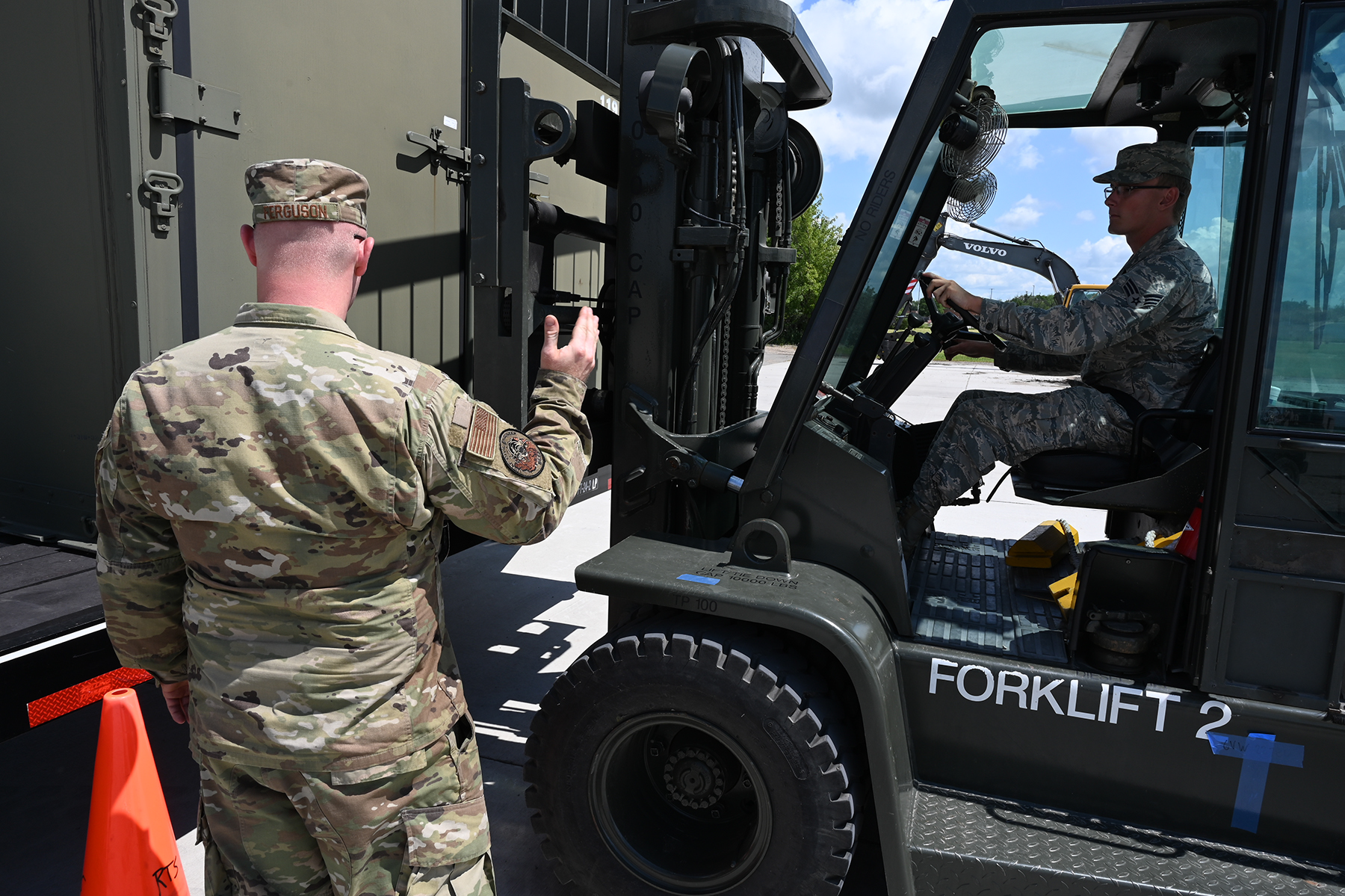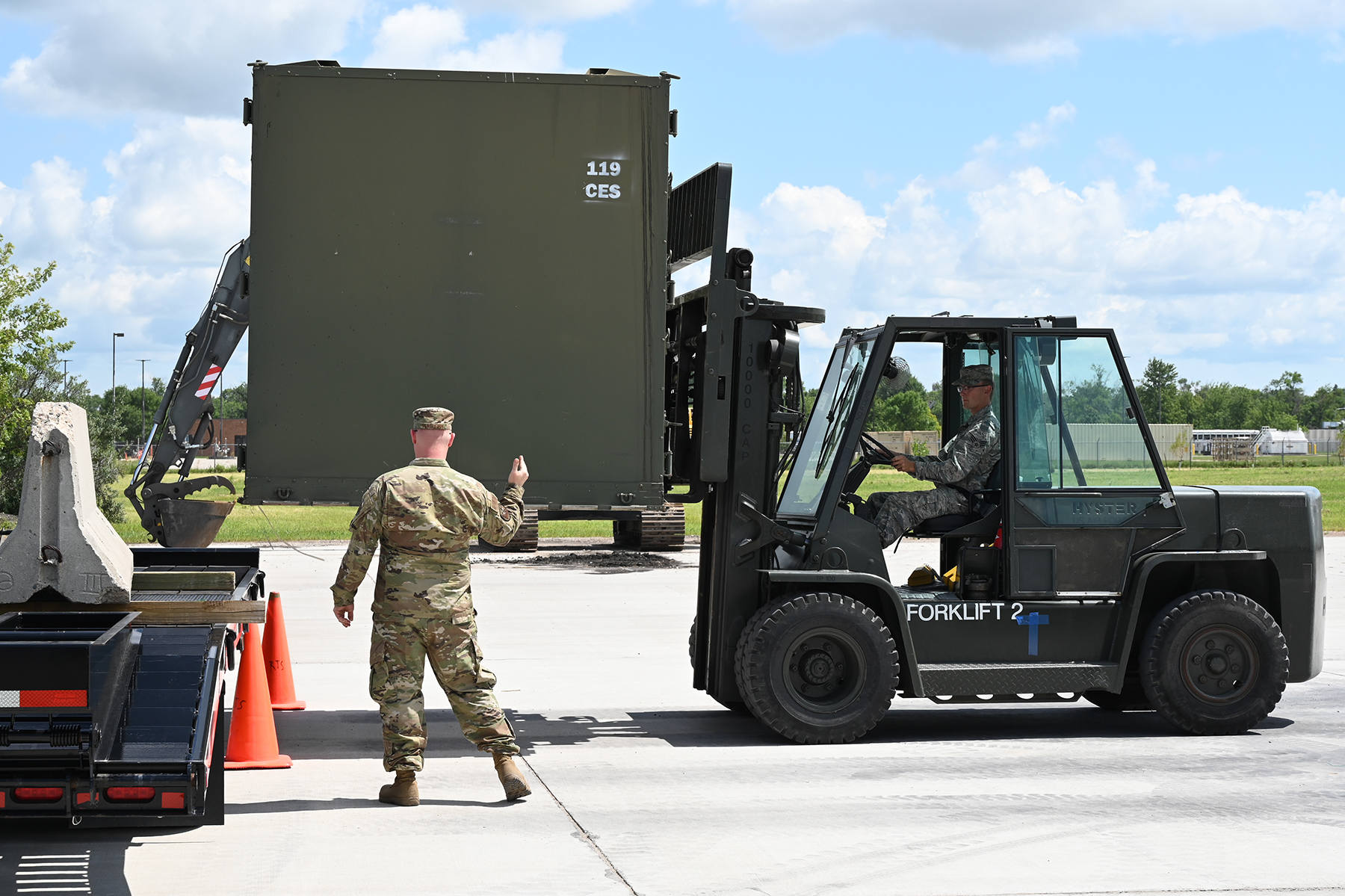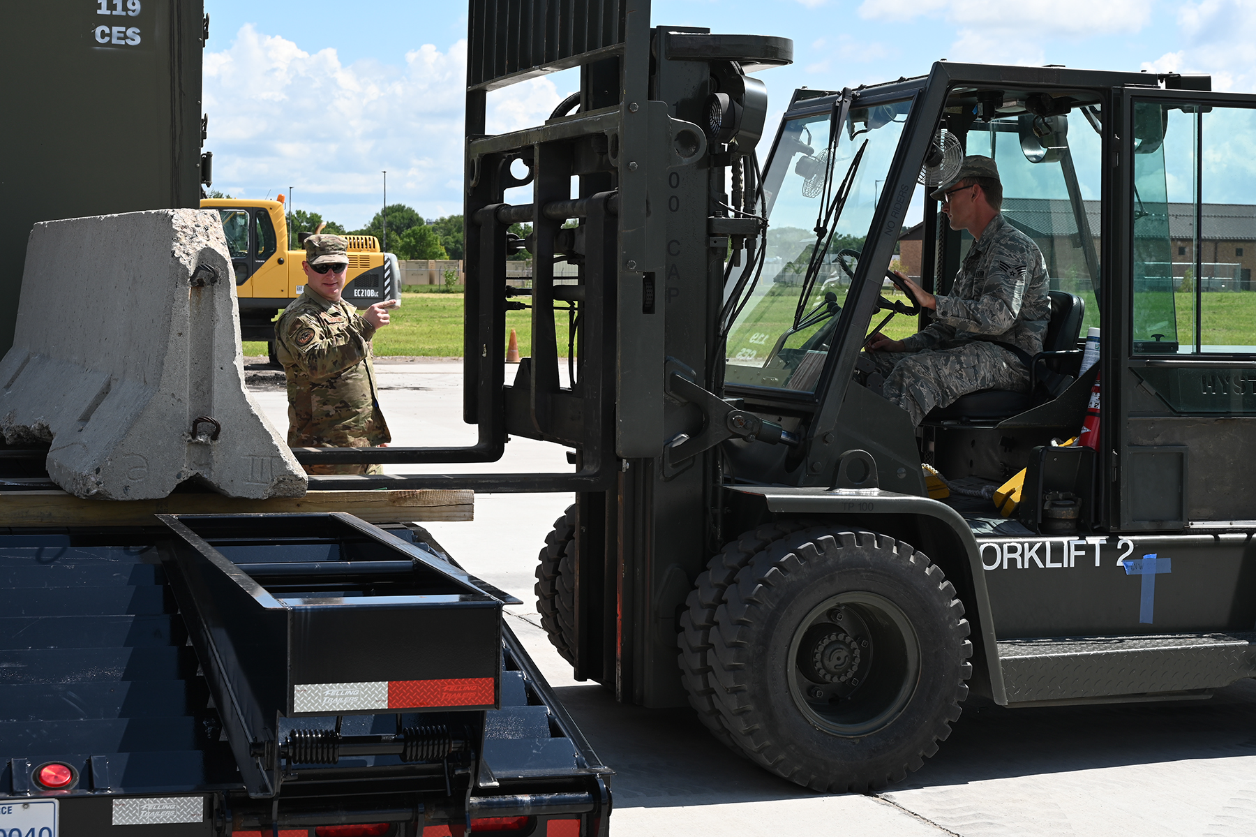 The N.D. Air National Guard's 119th Civil Engineer Squadron gathered for their first unit training assembly since March on August 1 and 2, 2020. Airmen practiced their forklift operating skills.