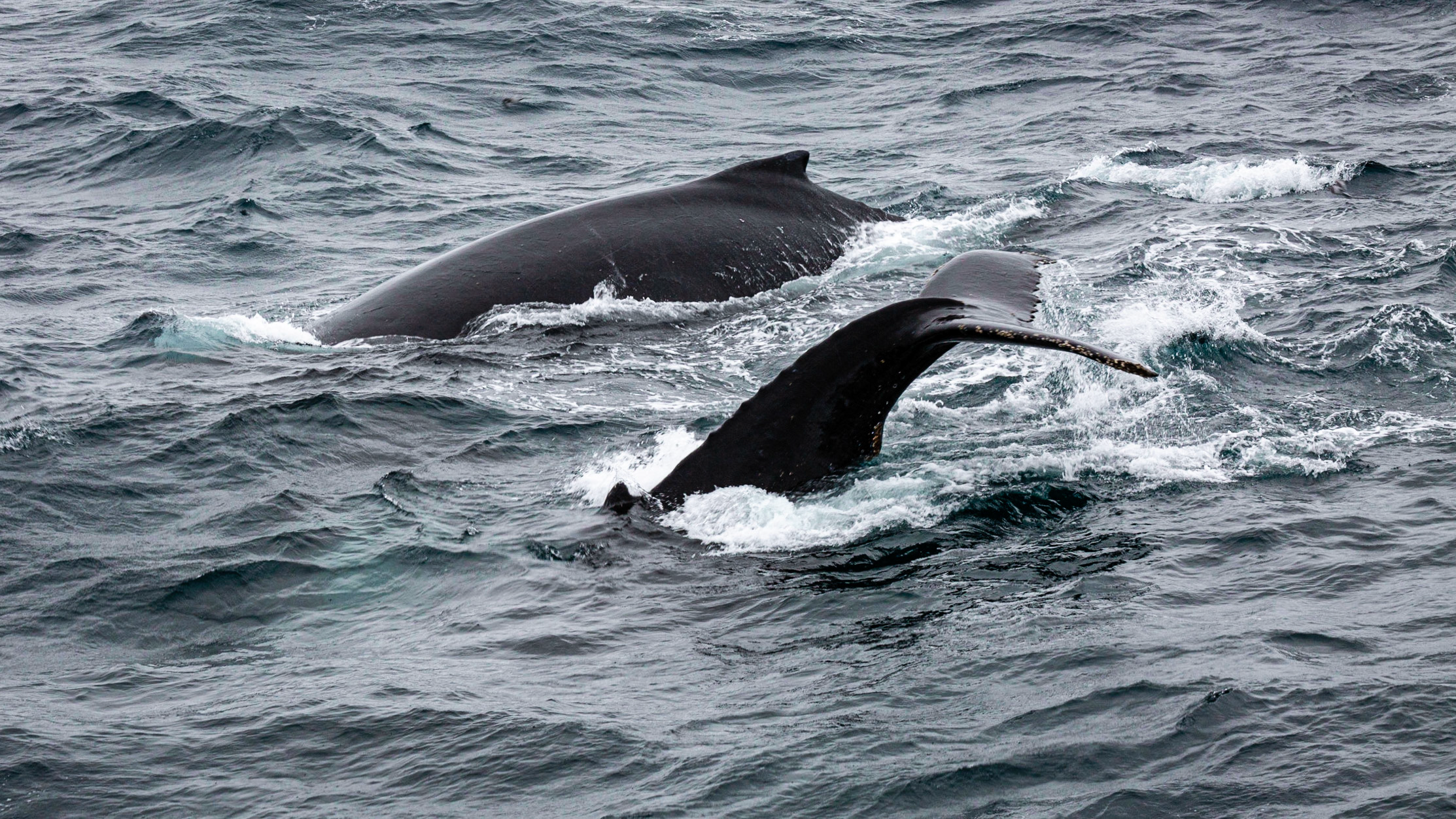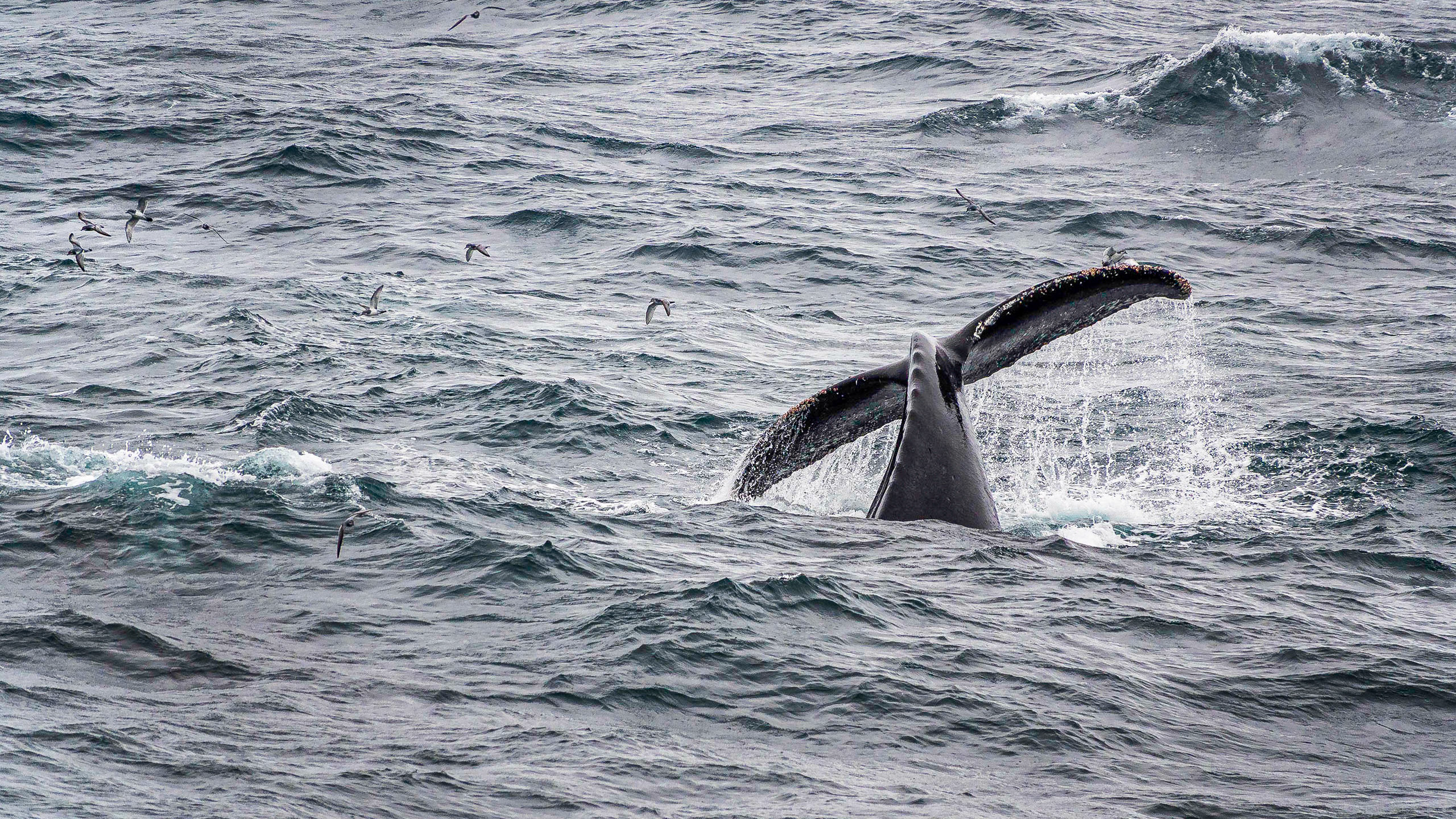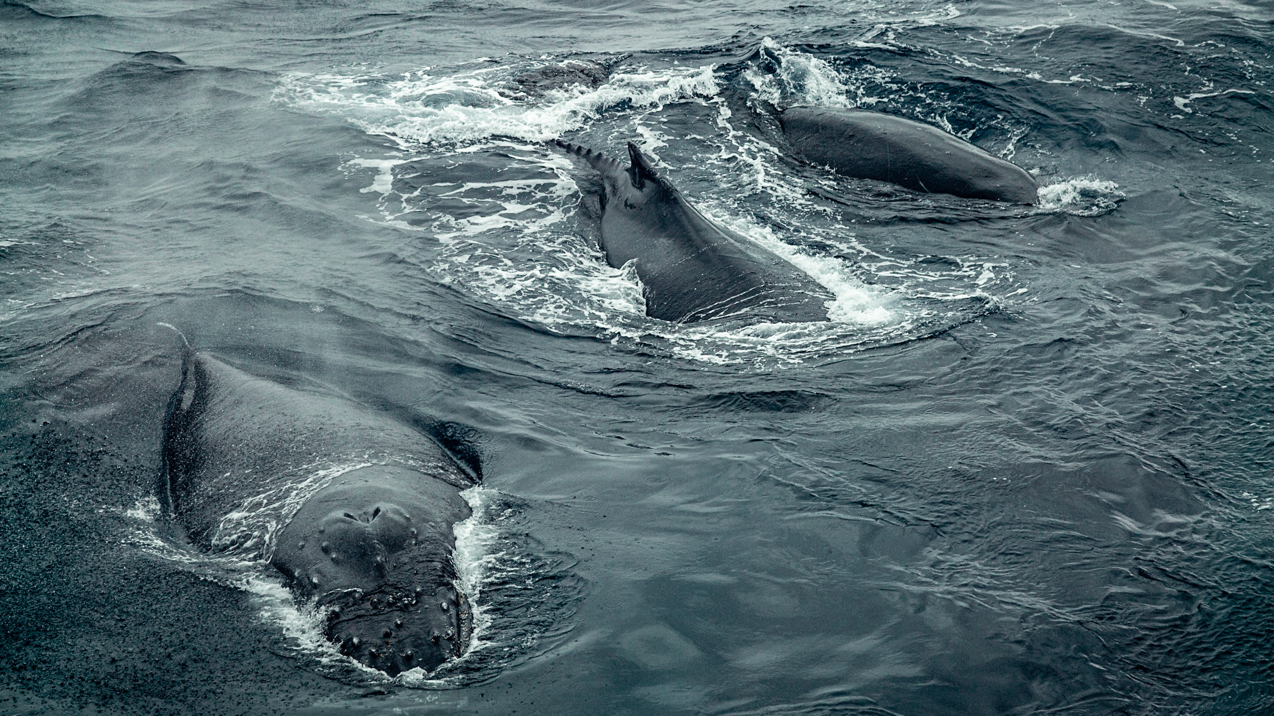 After two days at sea, our first land sighting was Shag Rocks. To our amazement a pod of humpback whales... numbering over 200 circled our ship. The expedition team said they had never seen anything like this before.