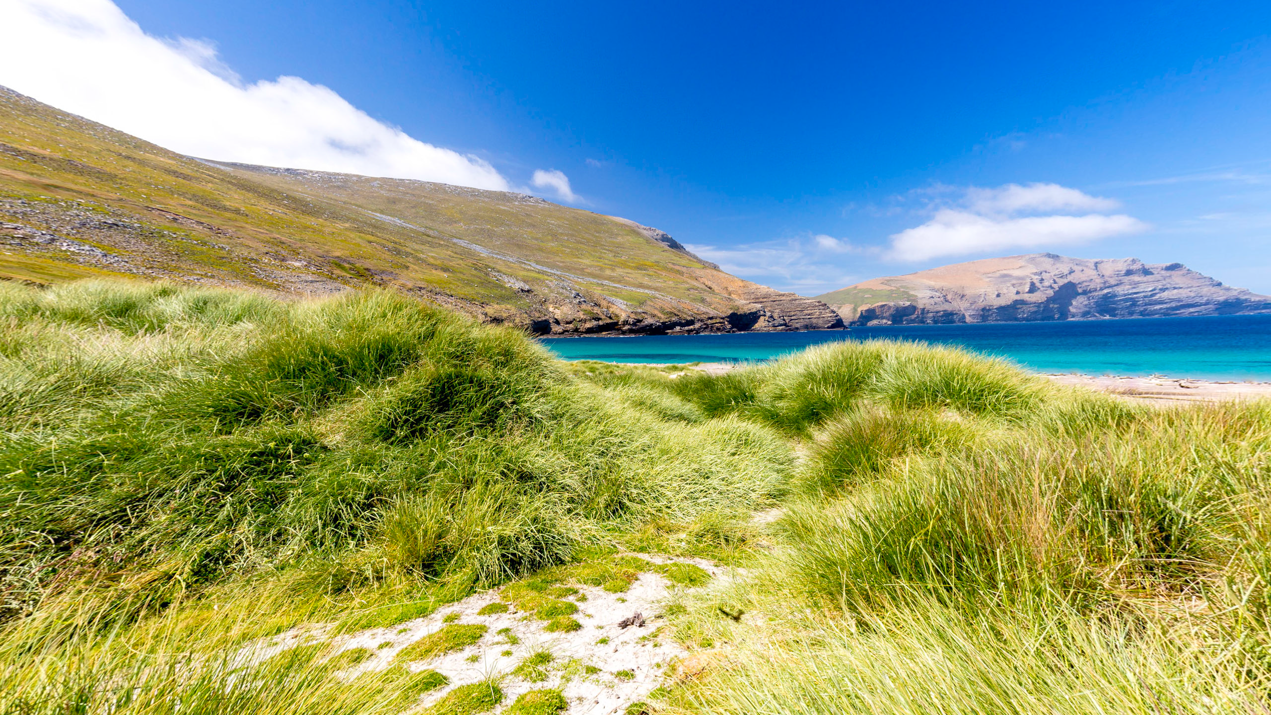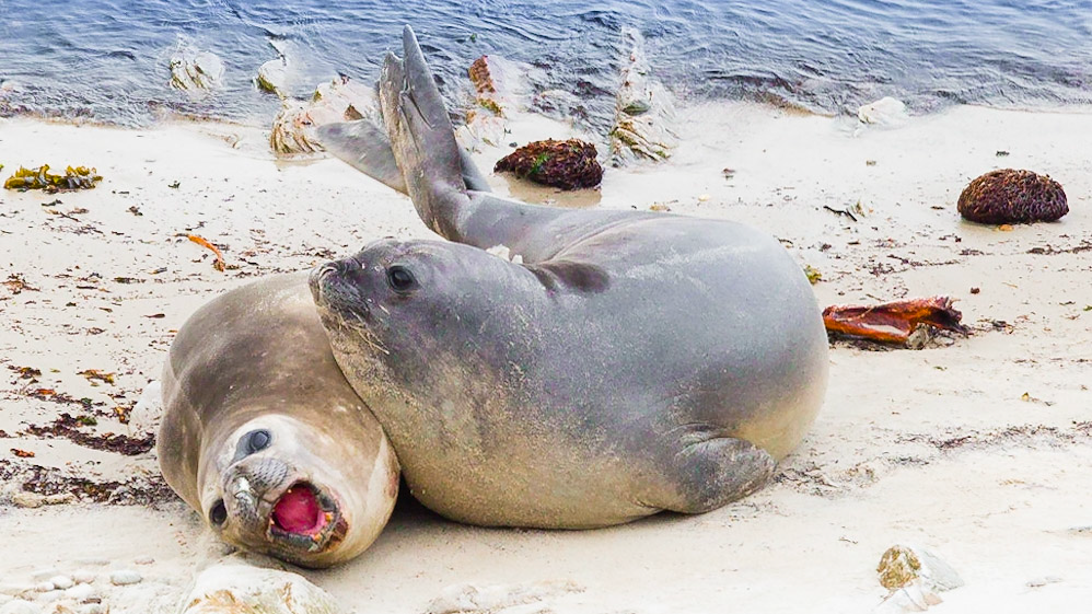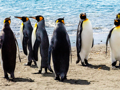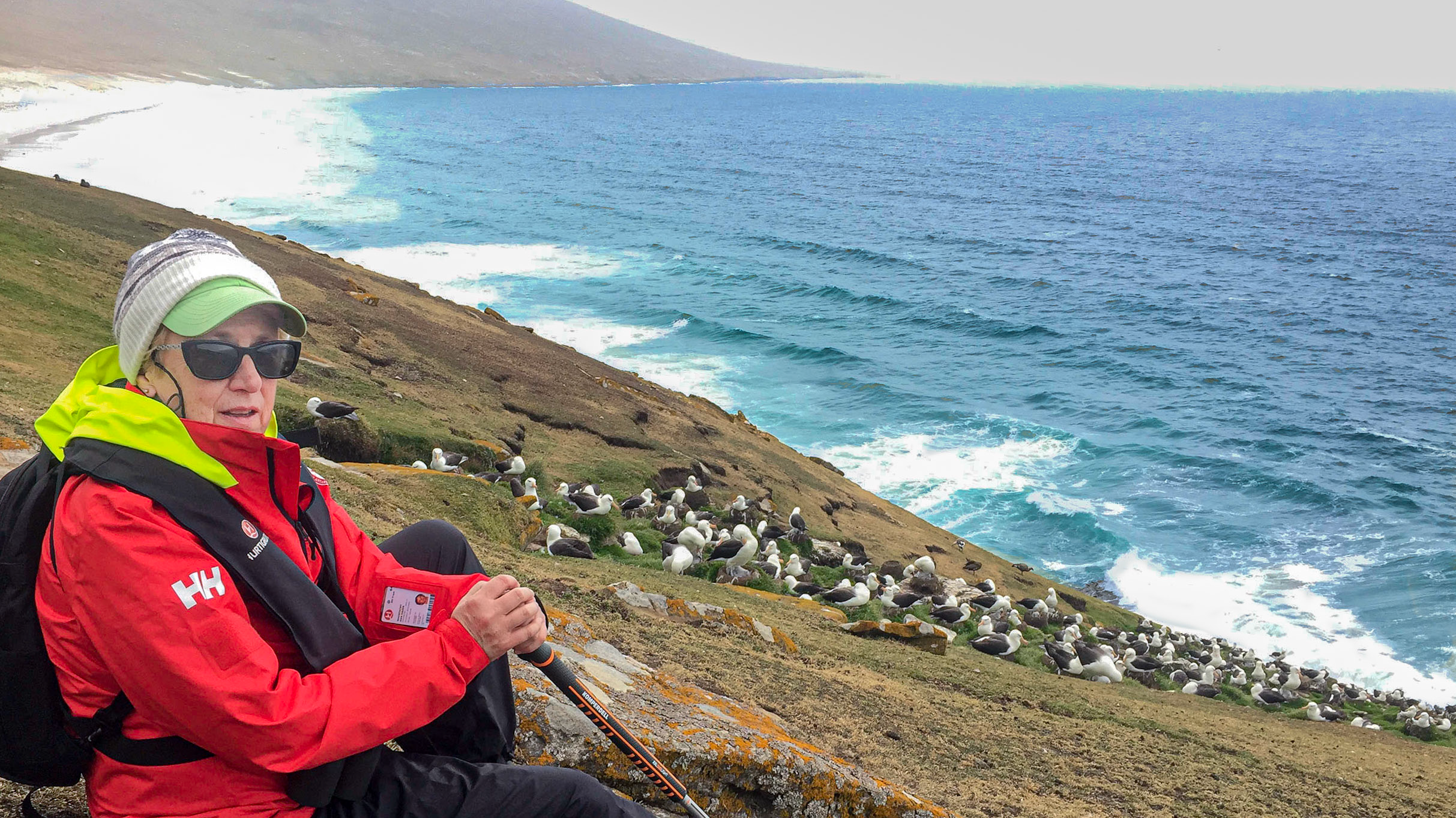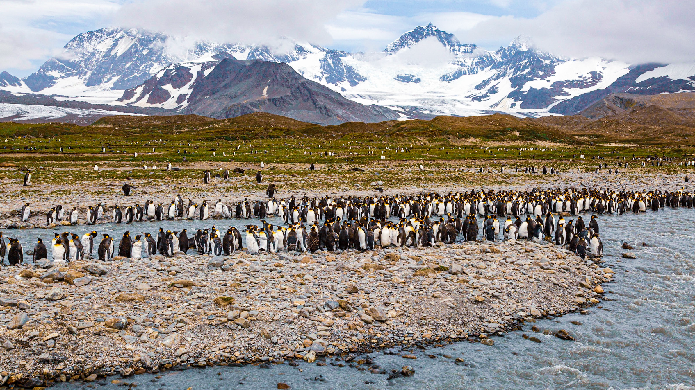After two days at sea, our first land sighting was Shag Rocks. To our amazement a pod of humpback whales... numbering over 200 circled our ship. The expedition team said they had never seen anything like this before.