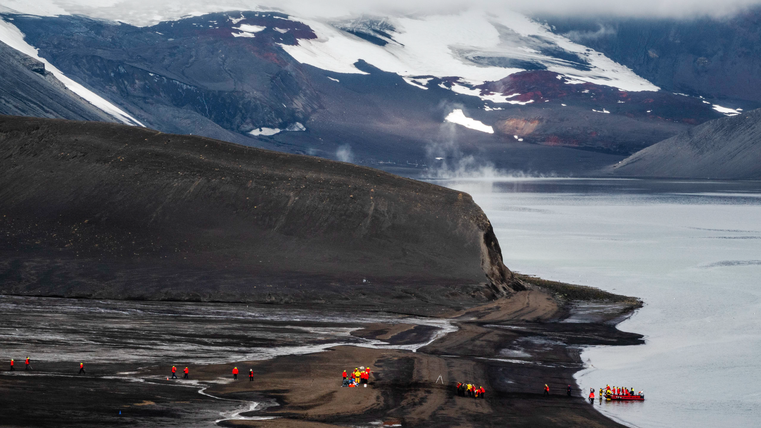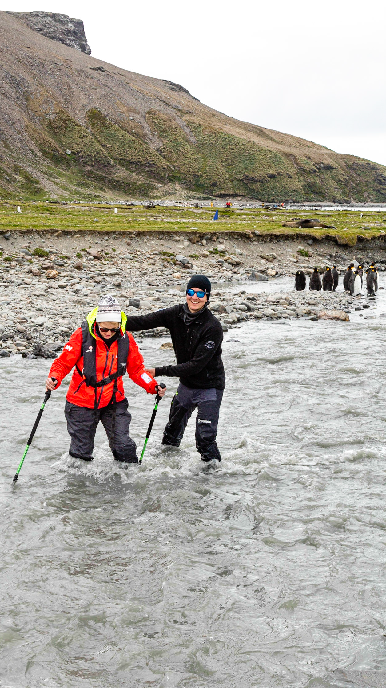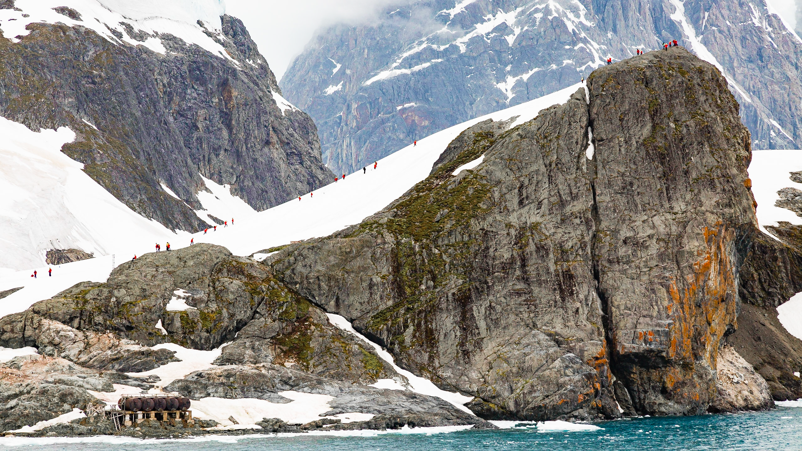 The weather smiled on Scott which allowed him to retrace Ernest Shackleton's hike from Fortuna Bay to Stromness whaling station. The expedition leader said he had been doing this trek for the last seven years. 60% of the time it gets cancelled to due bad weather and poor visibility. He said this day was the best day he had ever had guiding the trek. We made a stop at Crean Lake with a view of The Tridents, which Ernest Shackleton, Tom Crean and Frank Worsley had to climb over to get to Stromness Bay. It was their first contact with humans in over 18 months.