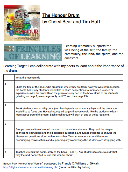 March - The Indigenous Support Worker from each school will gather their grade 5 students to read and discuss the book, "Drum from the Heart" by Ren Louie. This book highlights the teachings of the drum and illustrates the journey of one young boy in finding his voice and joyfully sharing songs from his nation with others.