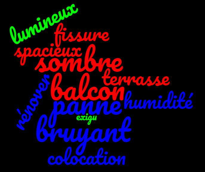 Associe les images suivantes avec ces mots qui indiquent des points positifs et négatifs de notre logement.