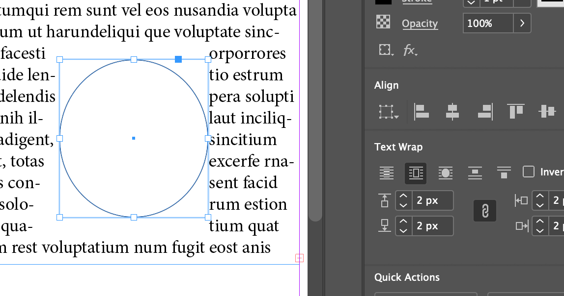 - Wrap Around Object Shape: Also known as contour wrapping, creates a text wrap boundary that is the same shape as the frame you’ve selected (plus or minus any offset distances you specify).