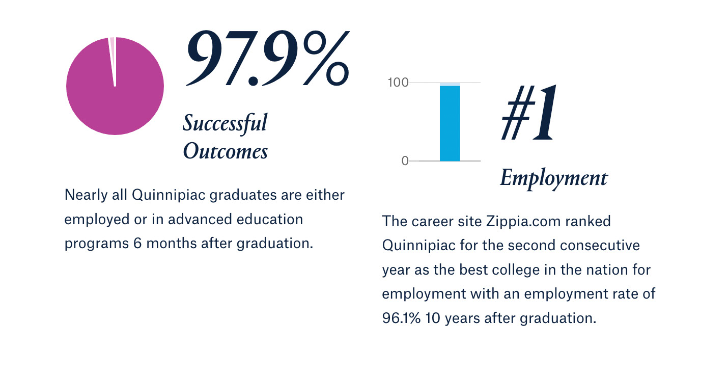 Nearly all Quinnipiac graduates (97.4%) are either employed or in advanced education programs 6 months after graduation.