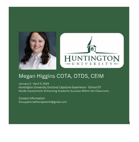 Handwriting performance is one of the primary skills required of students to participate in academics. Handwriting skills require not just fine motor coordination, but also proficient visual motor integration; which includes the ability to utilize visual perceptual abilities to coordinate fine motor movements. Furthermore, adequate visual acuity, upper body coordination, and the integration of primitive reflexes (Memisevic & Djordjevic, 2018; Vries et. al., 2015). When considering overall handwriting performance in the classroom 5-25% of the school population demonstrates poor writing skills (Taverna et. al., 2020). With the demands of handwriting skills in the classroom it is important for children who may be struggling with these skills to receive adequate resources and attention to prevent further delays.