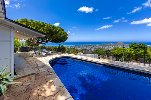 This enchanting, single-story residence, with a well-hidden private driveway, offers unobstructed views of Kahala, Diamond Head, and Waikiki extending to the sparkling ocean, reminiscent of Royalty surveying their splendid realm.