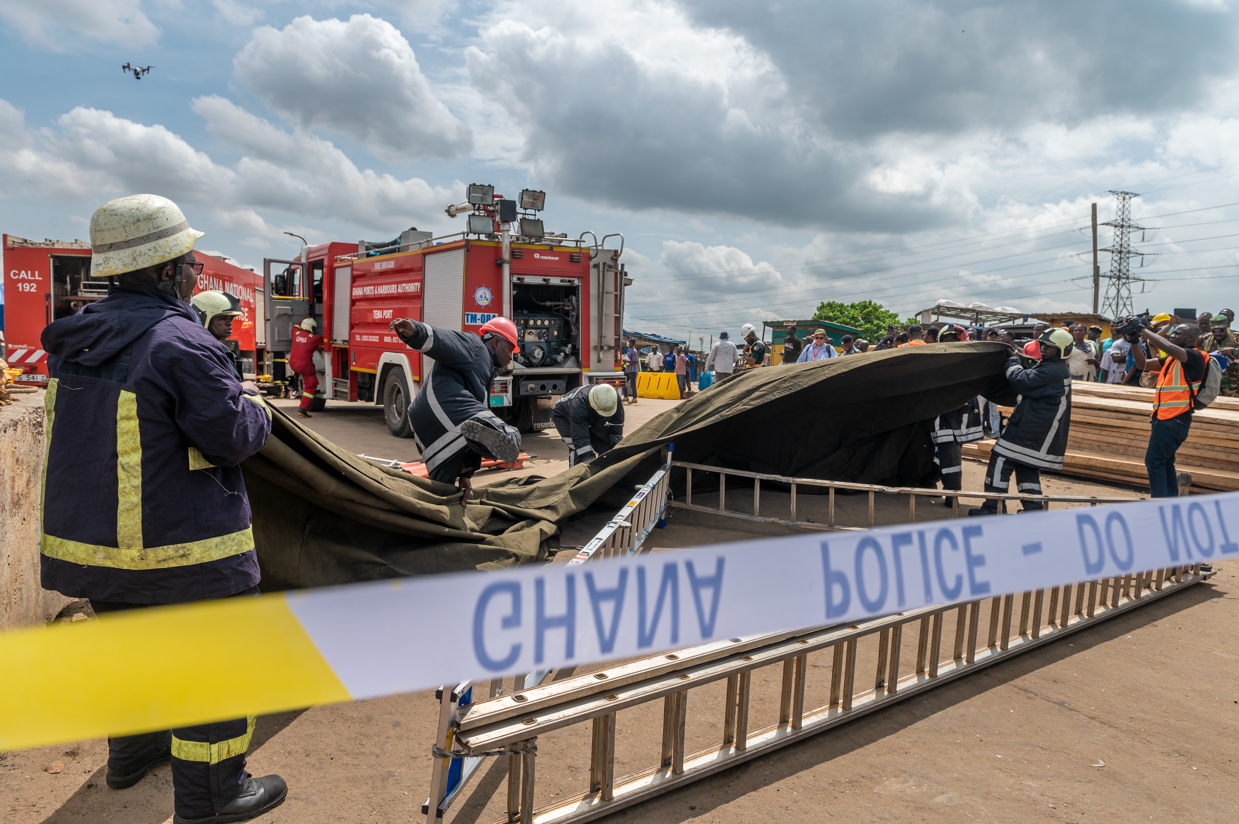 The Ghanaian agencies included the Ghana National Fire Service, Ghana Armed Forces (48 Engineer Regiment), National Ambulance Service, Ghana Police Service, National Communications Authority, Ghana Health Service, the Geological Survey Authority, and the Volta River Authority.