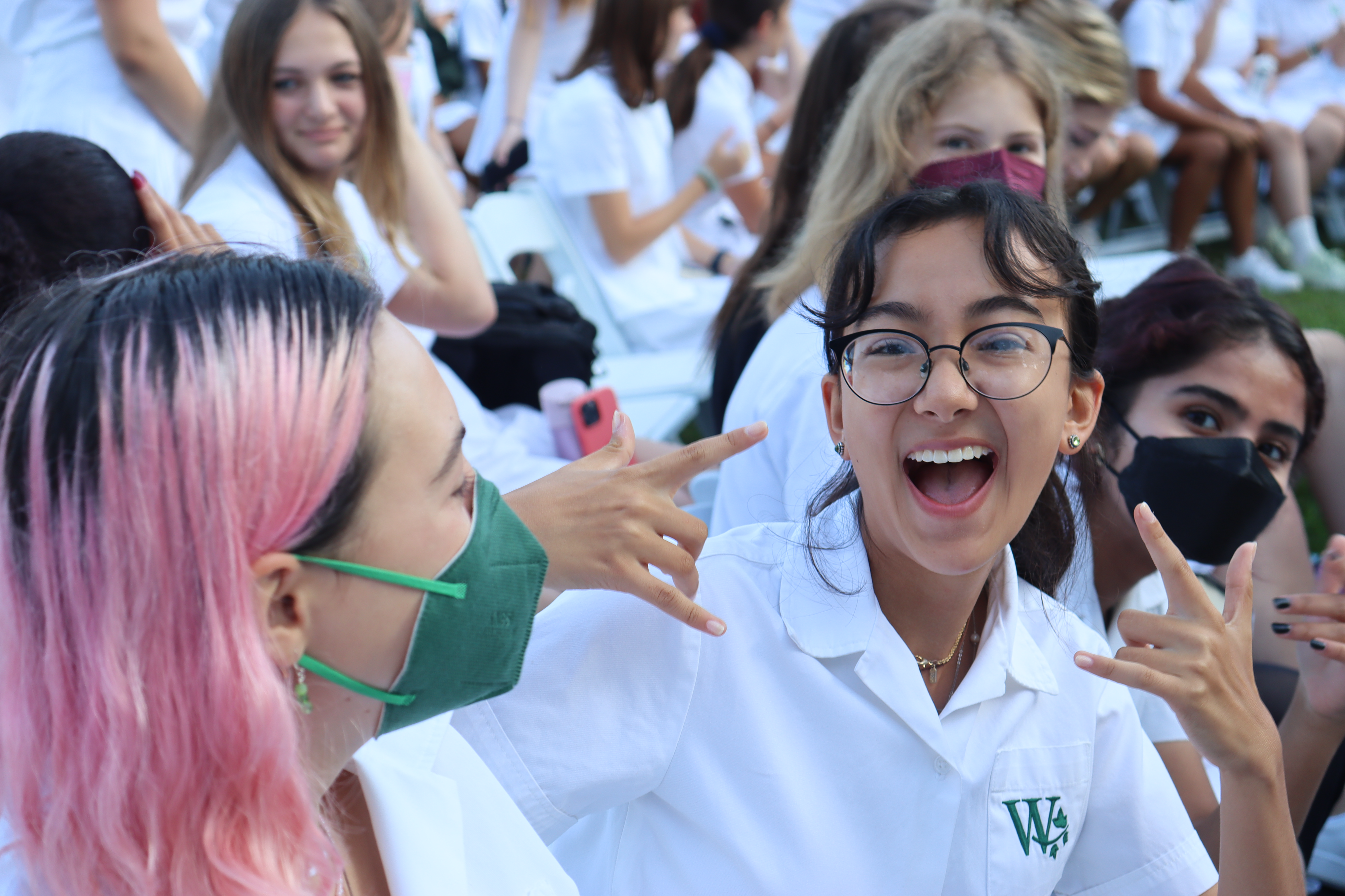 Returning student, Mia G. ’25, who experienced Convocation before the pandemic, agreed. “It’s so great to be back at school and be in person with everybody,” she said. “I love the new Head of School. Her speech was amazing.”