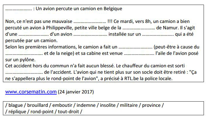 5. Comprendre un texte : "Un avion percute un camion" (fait divers insolite)