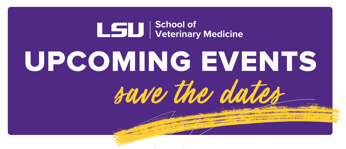Mark your calendars for upcoming events. Visit our website at www.lsu.edu/vetmed or click the link below for a listing of upcoming alumni events.
