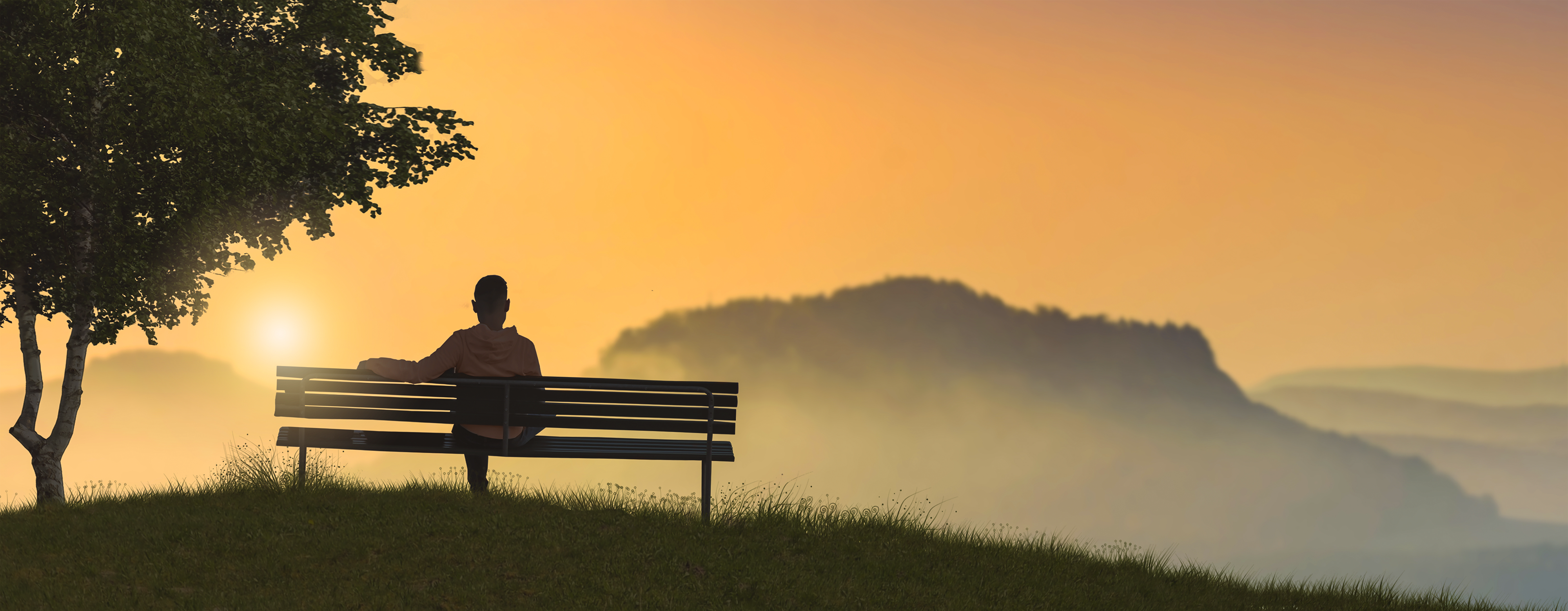 Creado con una imagen de Njay - "Young man sitting on bench enjoy nature."
