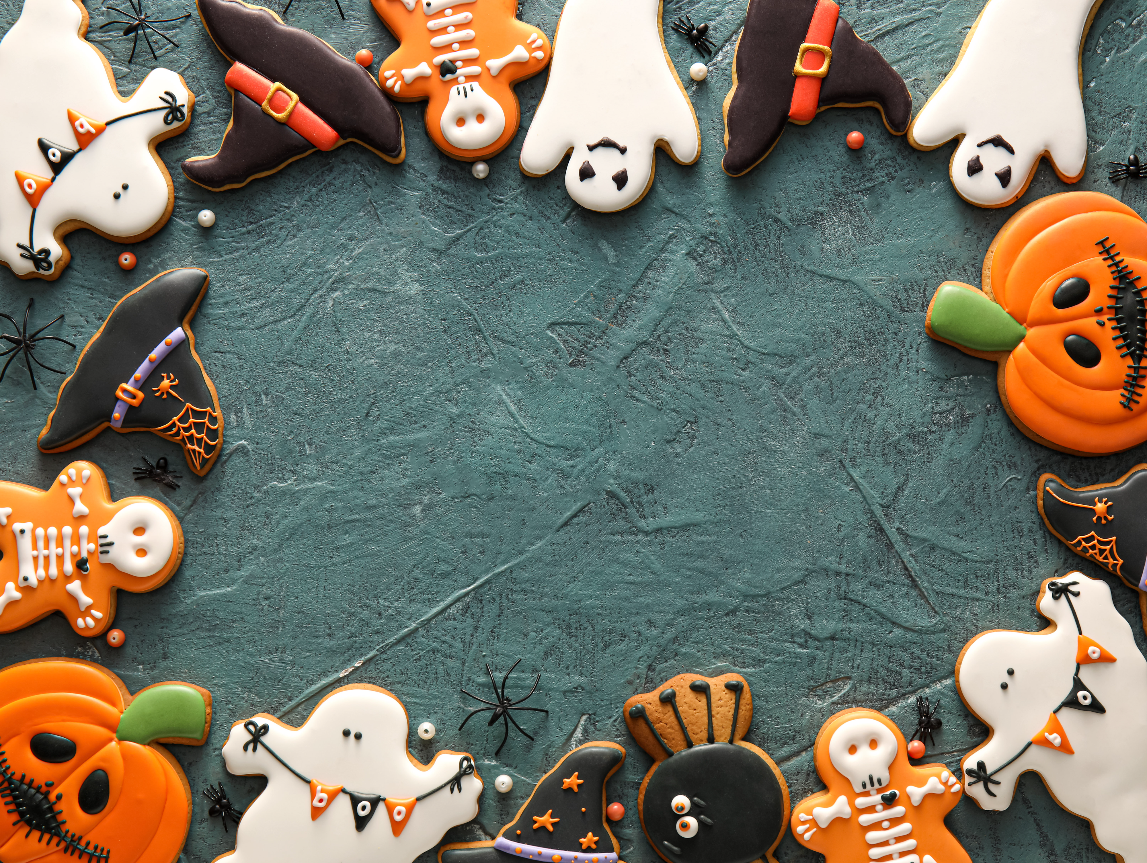 Created with images by Pixel-Shot - "Frame made of tasty cookies for Halloween celebration on dark background" • Brad Pict - "Save the date"