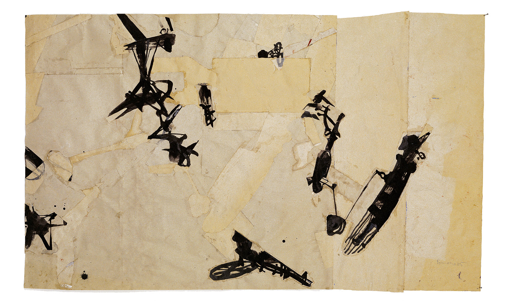 Die Skulpturen entstehen aus Fundhölzern, aussortierten Möbeln, Fensterrahmen oder Astwerk, von wo auch immer mitgebracht. Die Materialien für die große Gruppe der sogenannten „Papierarbeiten“ sind nicht selten Überbleibsel anderer Arbeiten mit oder auf Papier, wie beispielsweise Reste von Scherenschnitten oder Teile verworfener Zeichnungen. Mit dem Prinzip der Collage und der Improvisation ist insofern auch dasjenige des Recycelns verbunden. Die Kompromisslosigkeit, mit der alle drei zur Anwendung gebracht werden, ist allerdings weniger eine selbstauferlegte Disziplin, vielmehr rührt sie aus einer früh erfahrenen, wenige Handlungsräume anbietenden Lebenswelt, wie sie die kommunistischen Gesellschaften diktierten.