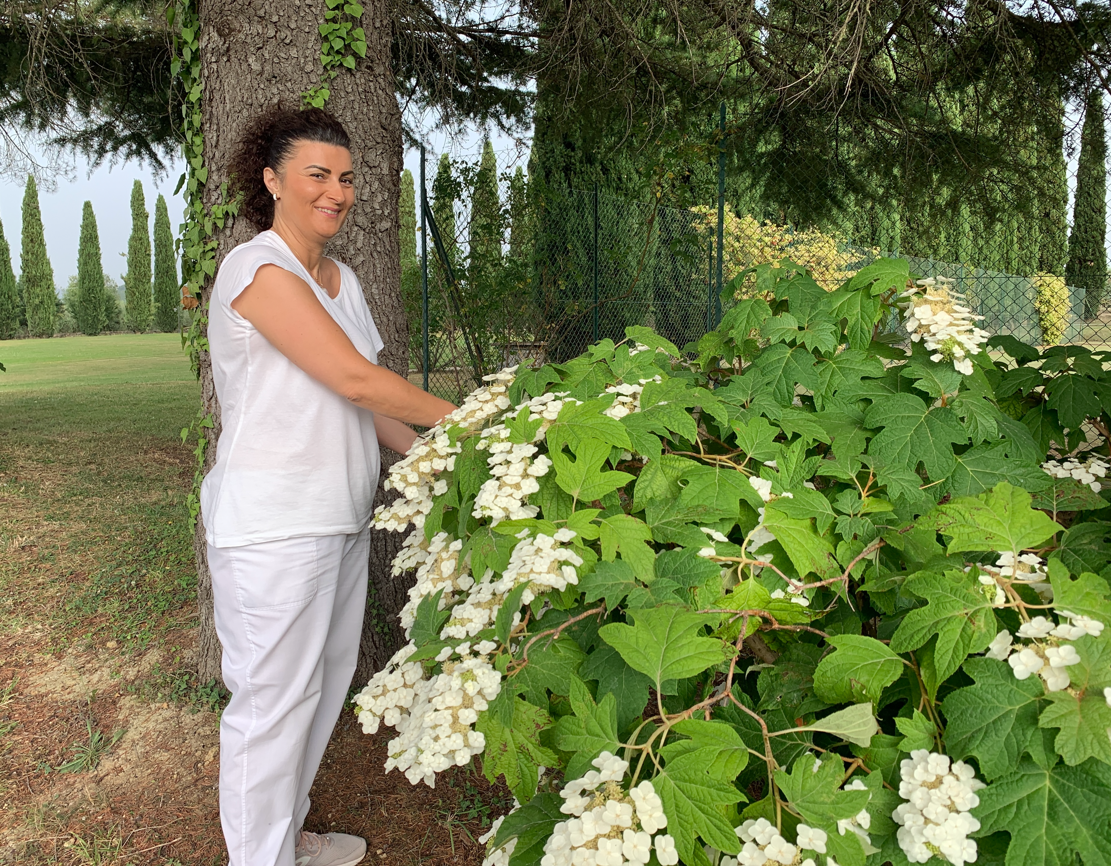 Camelia porte bien son nom, elle qui chaque jour part à la cueillette de fleurs du domaine, afin de décorer les tables de la Cena.