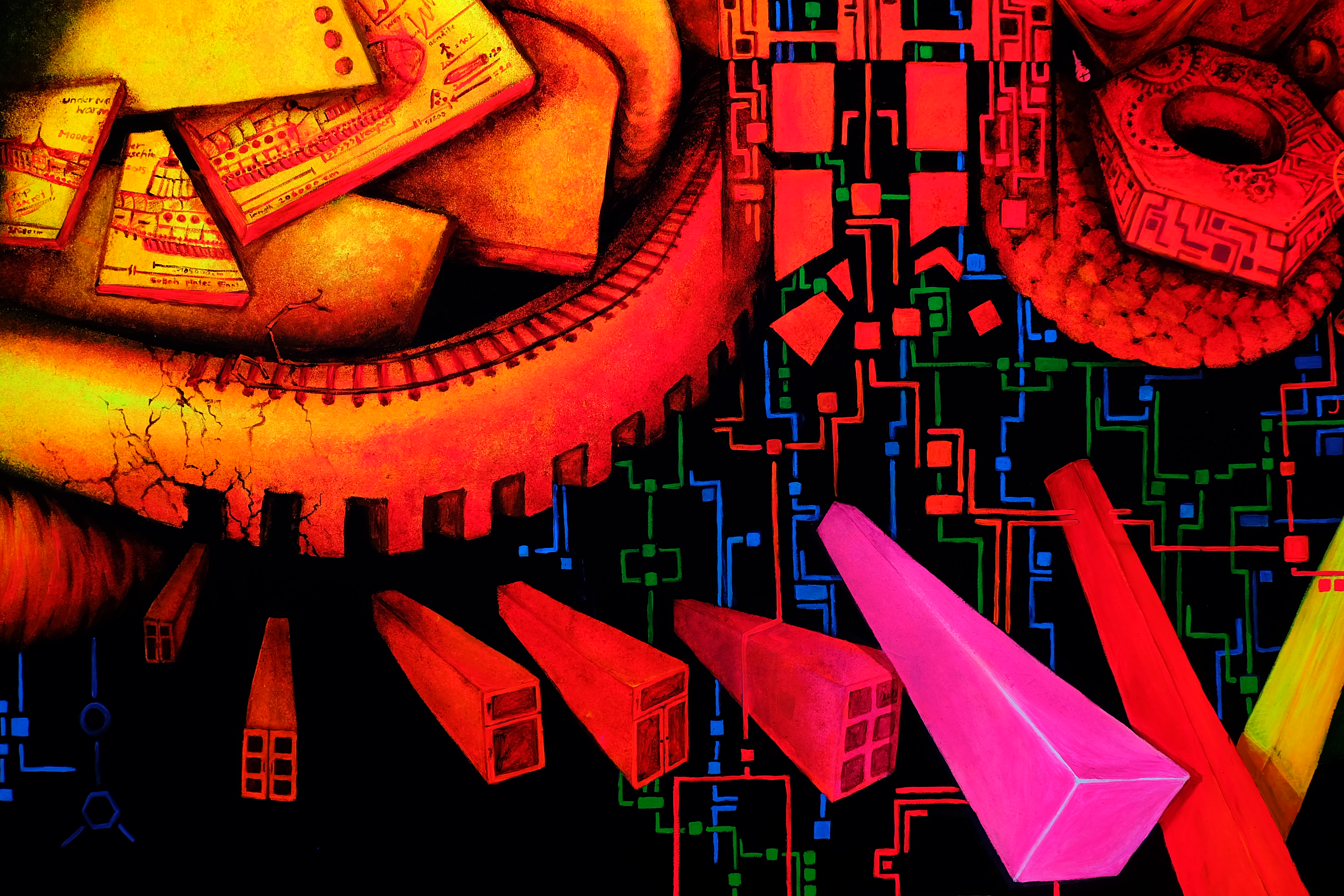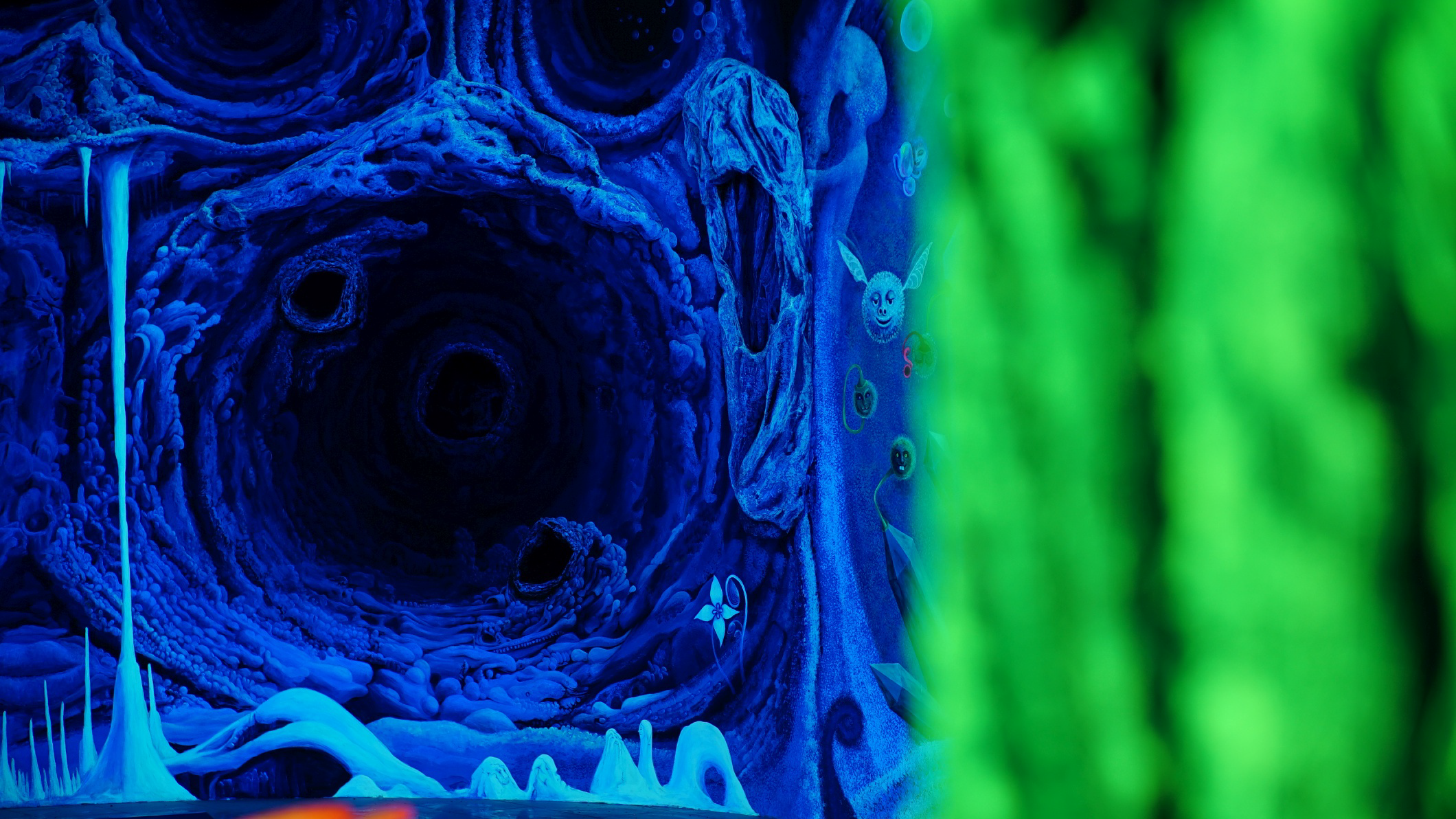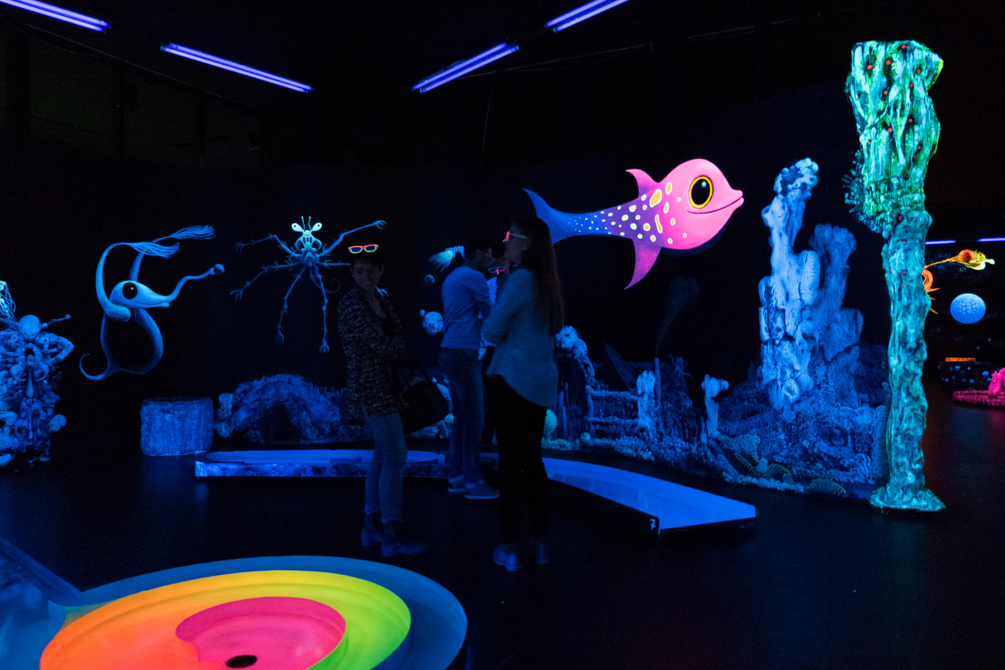 Die beiden Hauptkünstler Michael "Colory" Krebs und Katrin "Chawila" Weiland haben einen einzigartigen Stil entwickelt. Das Malen mit 3D Leuchtfarben perfektioniert. Micha "Colory" schon seit 35 Jahren. Unterstützt werden sie von dem Team der Schwarzlichfabrik, Gast- und vielen Assistenzkünstlern. Der Bauplan für einzelnen Räume der Minigolfbahn wird in Abhängigkeit zu den Entwürfen der Künstler gestellt. Von Grund auf ist jeder Schritt Teil eines Gesamten. Auch die Lobby gehört dazu. Die 18 Minigolfbahnen werden in unserer Werkshalle in Nürnberg individuell gefertigt, und zwar jede passend zu der Wandbemalung vor der sie steht. Die Hindernisse und Aufbauten sind jeweils Unikate. Auch diese werden in Nürnberg hergestellt. "3D Brille auf!" und es leuchtet eine beispiellose Gesamtskulptur aus Raum, Farbe und Form. In einem bespielbarem Gewand das jeden begeistert, ob jung oder alt, ob einfach oder kompliziert.