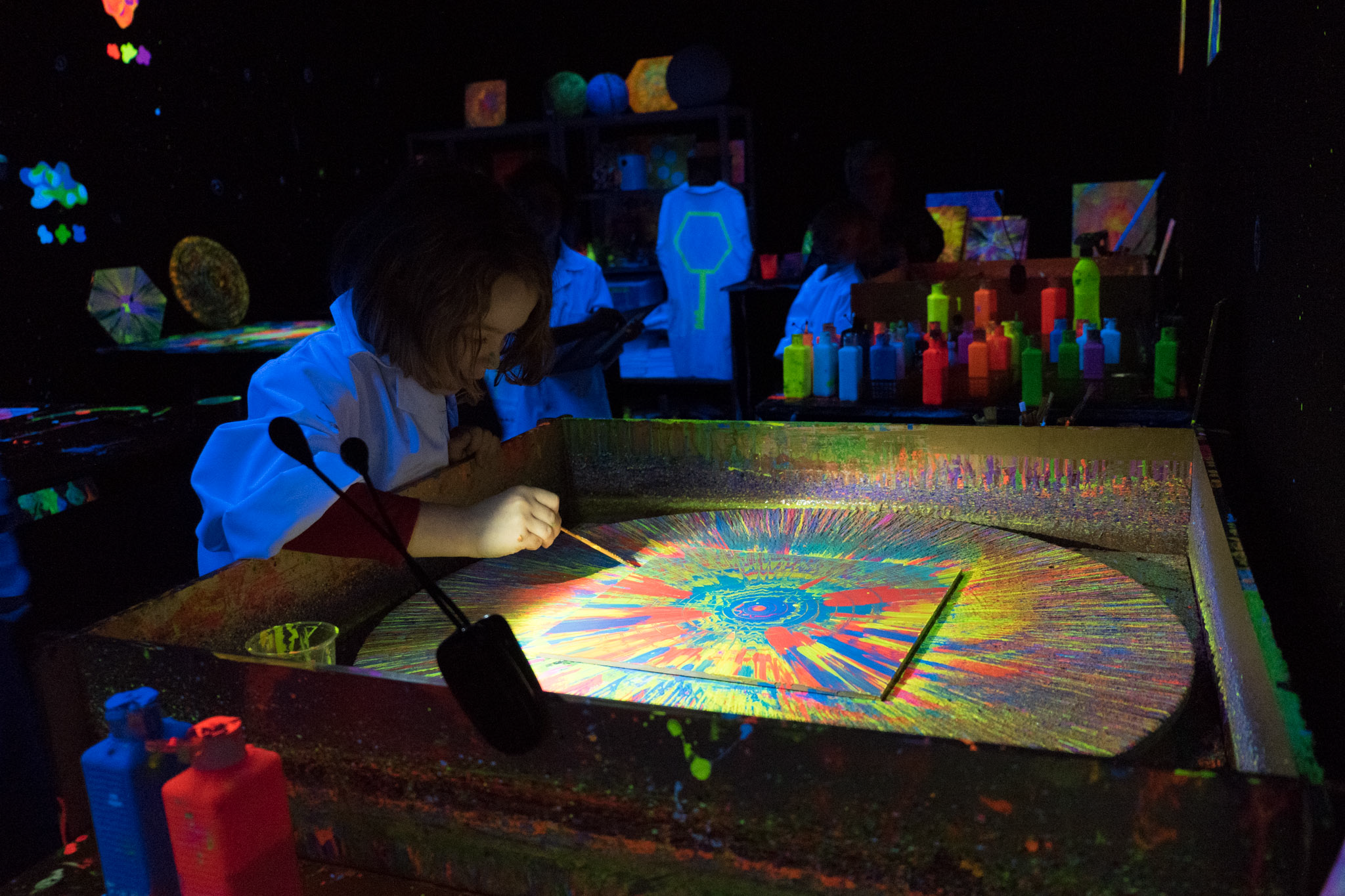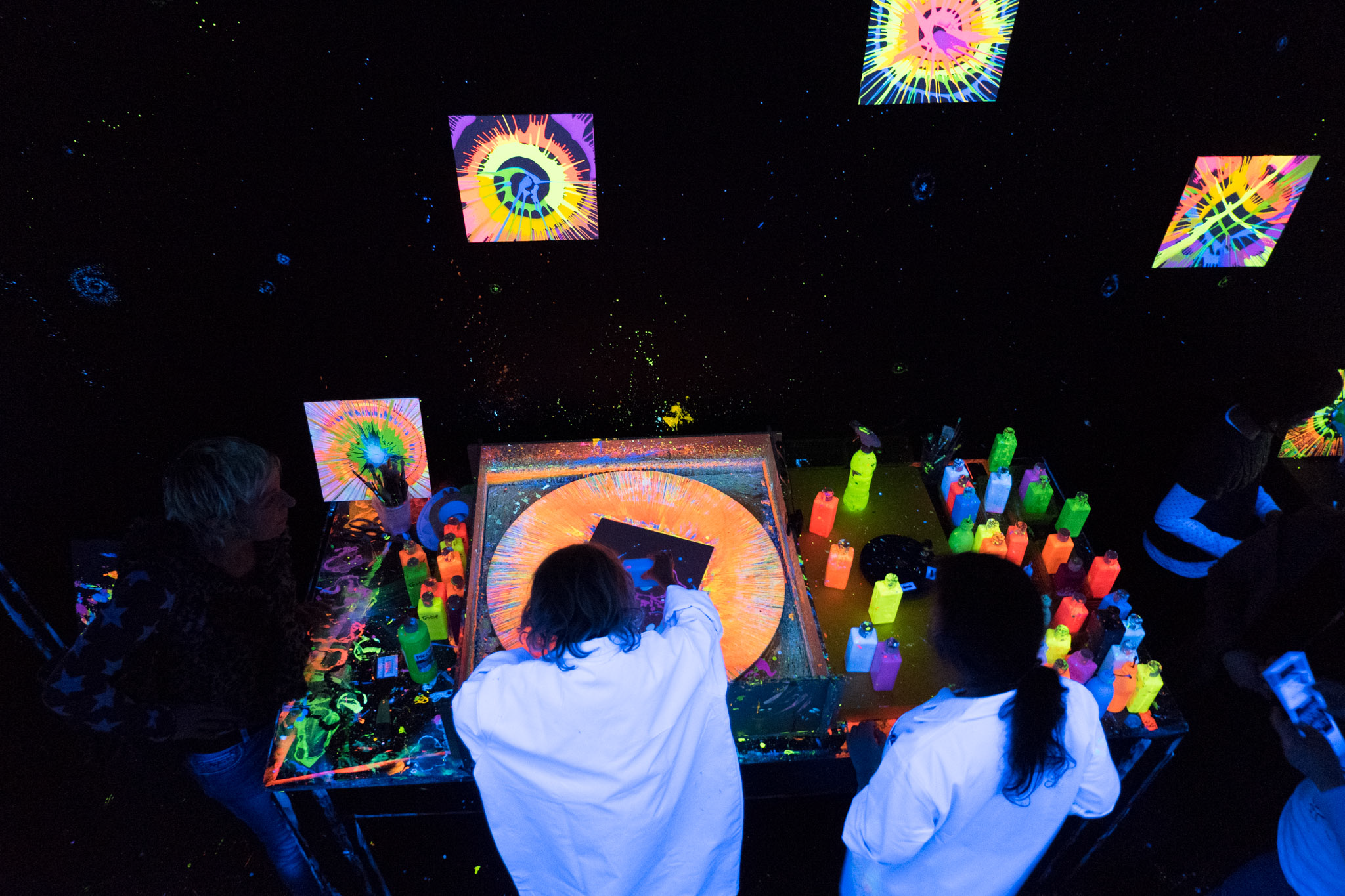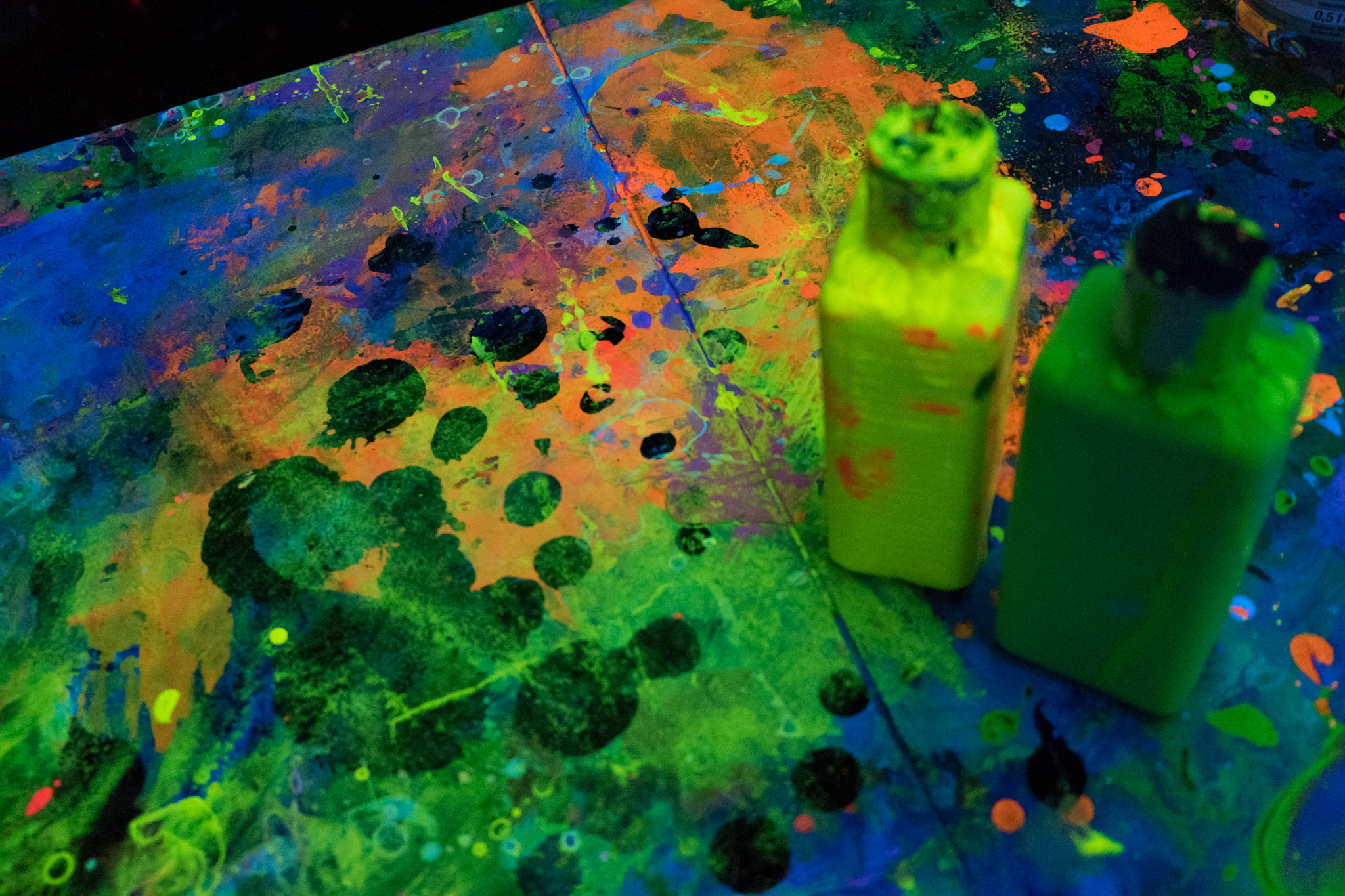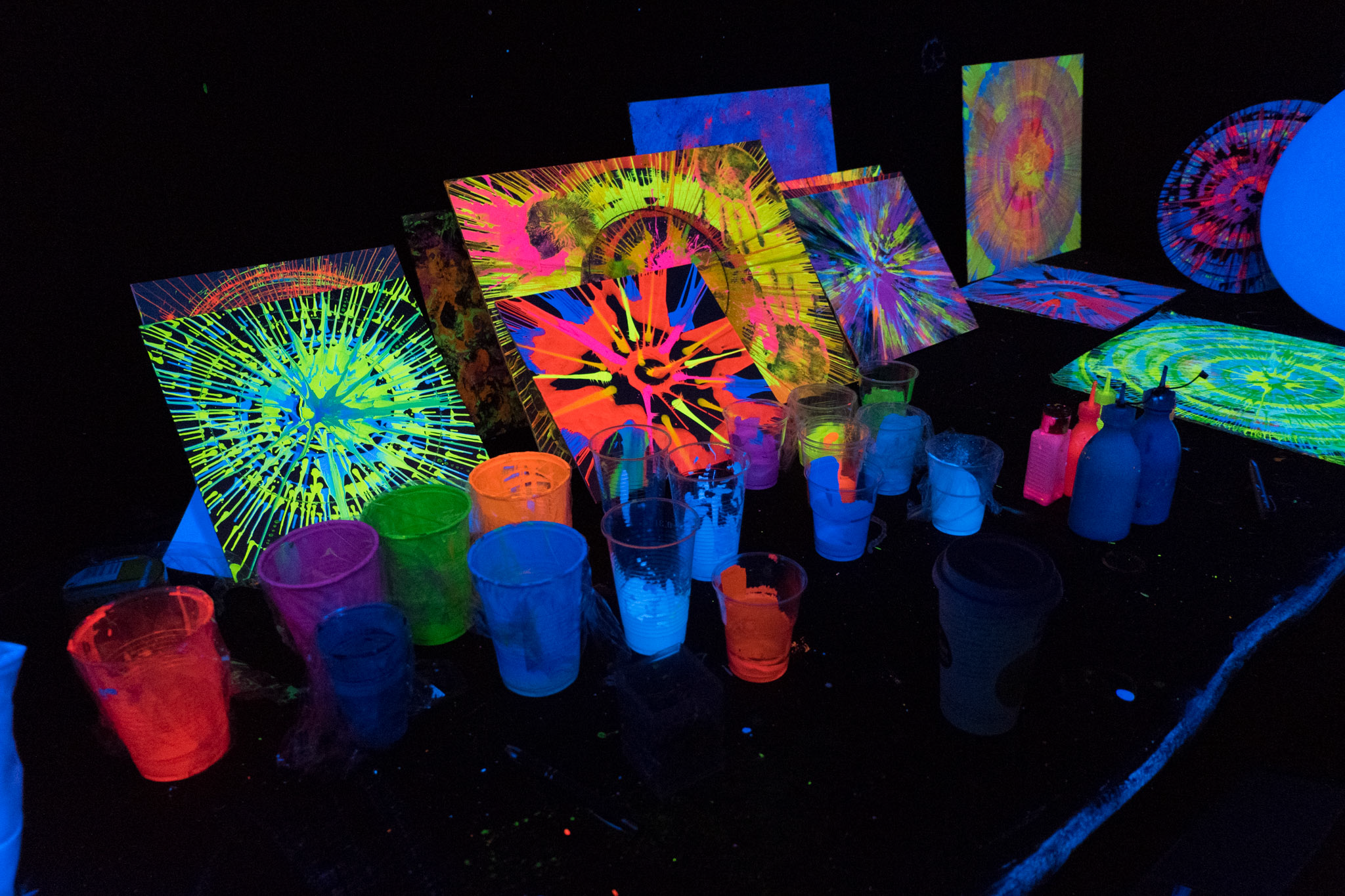 In unserer Kreativ Werkstatt können Sie selbst mit Ihrer Gruppe/Veranstaltung/Kindergeburtstag verschiedene kreative Techniken der Schwarzlichtfabrik ausprobieren.