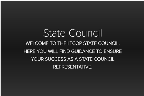 WELCOME TO THE LTCOP STATE COUNCIL. HERE YOU WILL FIND GUIDANCE TO ENSURE YOUR SUCCESS AS A STATE COUNCIL REPRESENTATIVE.