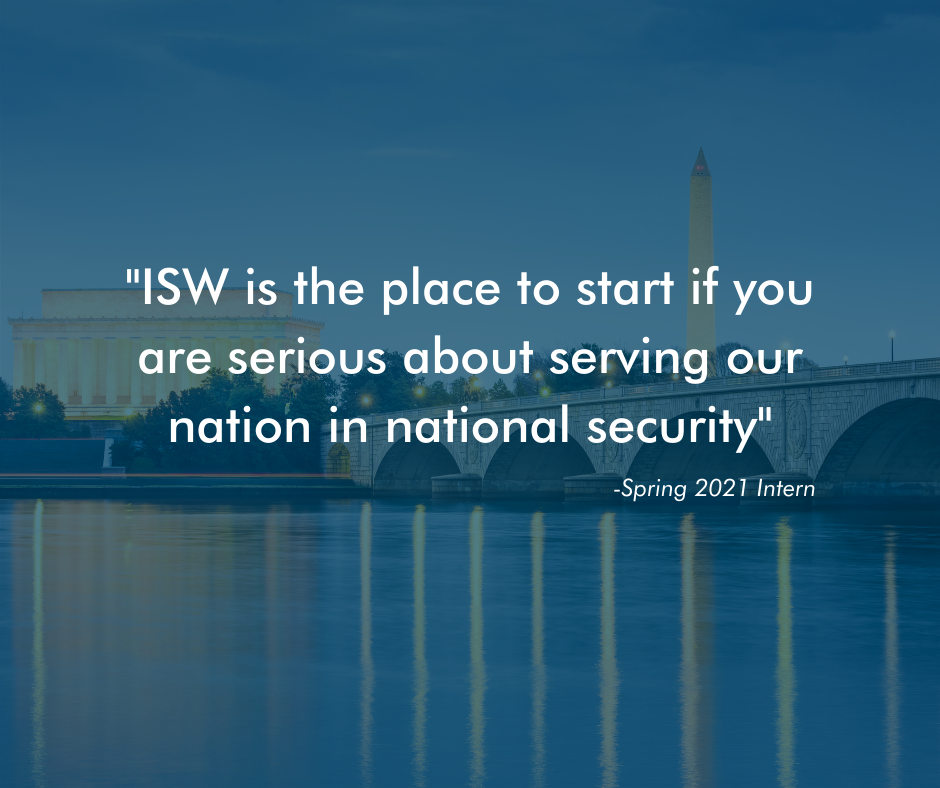 Interns join a broad alumni community of up-and-coming national security leaders and practitioners upon completing the program. ISW alumni work across the national security profession, in government as well as NGOs, security and management consulting, law firms, academia, and more.