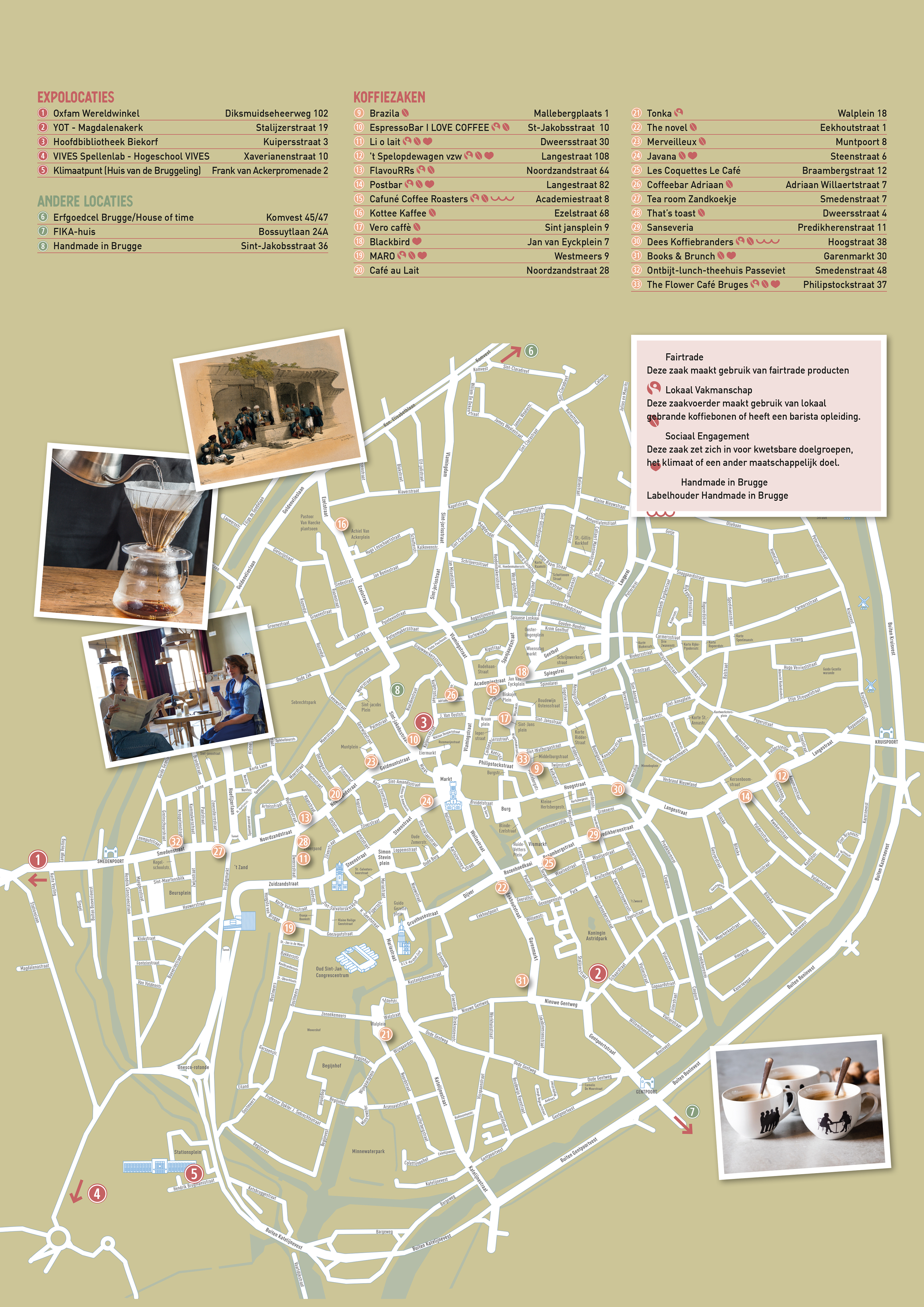 Ook Brugge kan er wat van! Voor we in het verleden duiken ontdek je via deze kaart dat ook vandaag veel koffie-ondernemers voor je klaar staan in de stadskern: