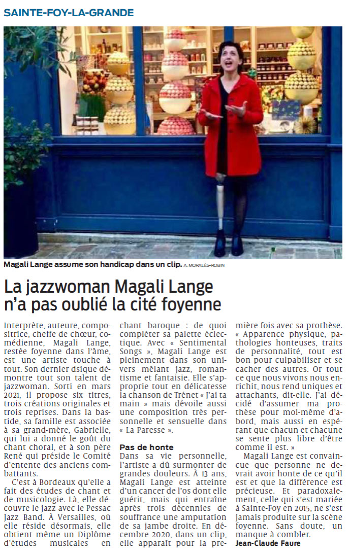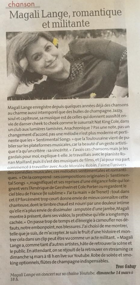Elle sort en 2021 sur toutes les plateformes de téléchargement musical son premier EP, Sentimental Songs, composé de 6 titres Jazz, Fantaisie et Romantisme, qui reçoit un bel accueil.