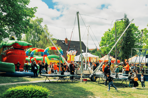Ein Tag voller Abenteuer: Mitten im Wohngebiet Igelpfuhl erhebt sich ein großer Berg. Davor bunte Hüpfburgen, eine Trampolin-Anlage, orangefarbene Zelte vor dem Bürgerhaus – das kann nur eines bedeuten: Es ist Igelfest!