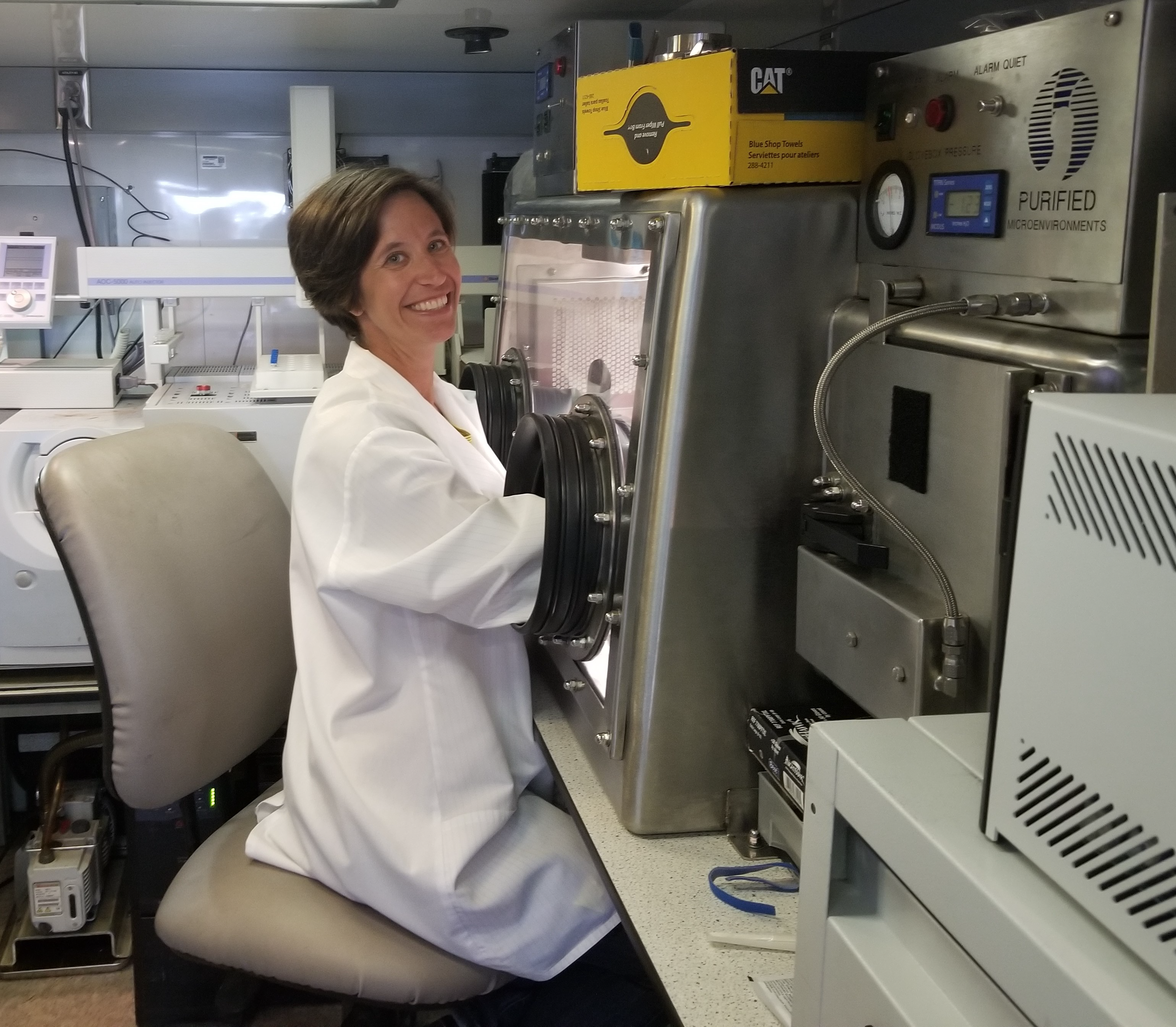Maggie Kuklok, N.D. State Dept of Health (DoH) Laboratory Microbiologist, conducts DNA extraction inside the 81st Civil Support Team's (CST) mobile laboratory in Bismarck on June 30. The CST regularly assists the DoH microbiology lab whenever maintenance at the lab limits the workers ability to perform certain tasks.