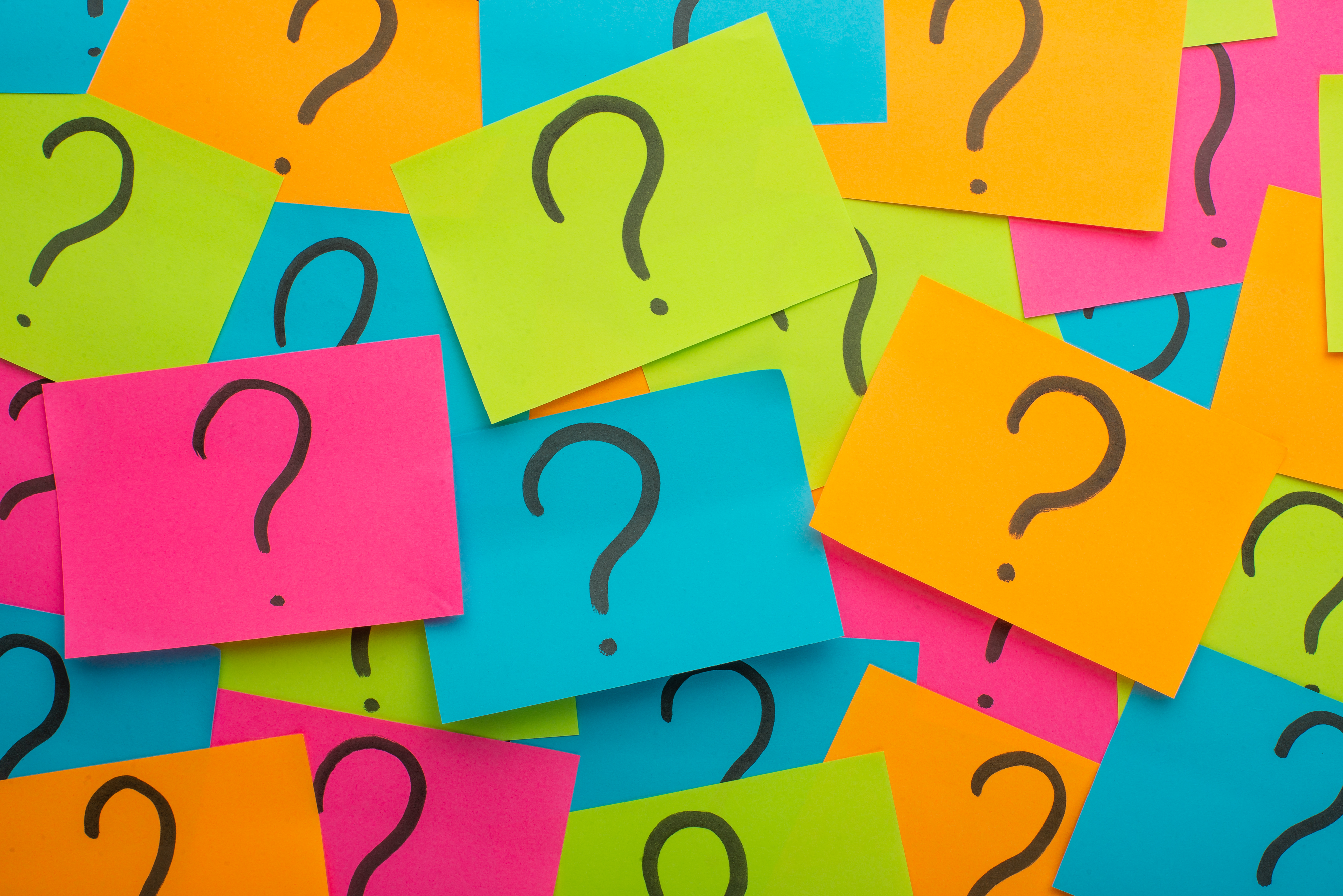 Created with images by Stepan Popov - "Too Many Questions" • thanakrit - "Close-up of colorful paper notes with question marks, creating a vibrant and playful background." • Anton - "Too Many Questions.,Pile of colorful paper notes with question marks.,Closeup."