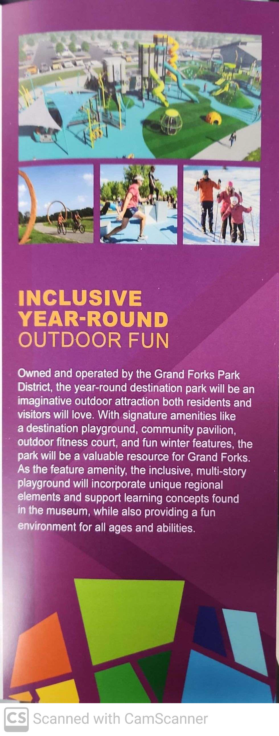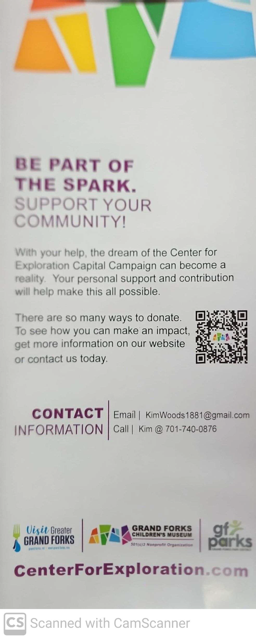 Kim Woods of the Center for Exploration spoke to the South Forks Lions a few weeks back. She discussed the funding campaign going on to raise funds for a Children's Museum/Center for Exploration. She shared drawings of the proposed facility and also a brochure explaining what all will be included. Kim thanked Altru for the donation of the land near Choice Fitness. She described the facility as a beautiful space, multi-purpose type facility where private events could be held. Visitors will be able to enjoy snacks and drinks while enjoying both indoor and outdoor areas. She said they anticipate 8-12 full-time employees, part-time staff and of course volunteers will be very important.