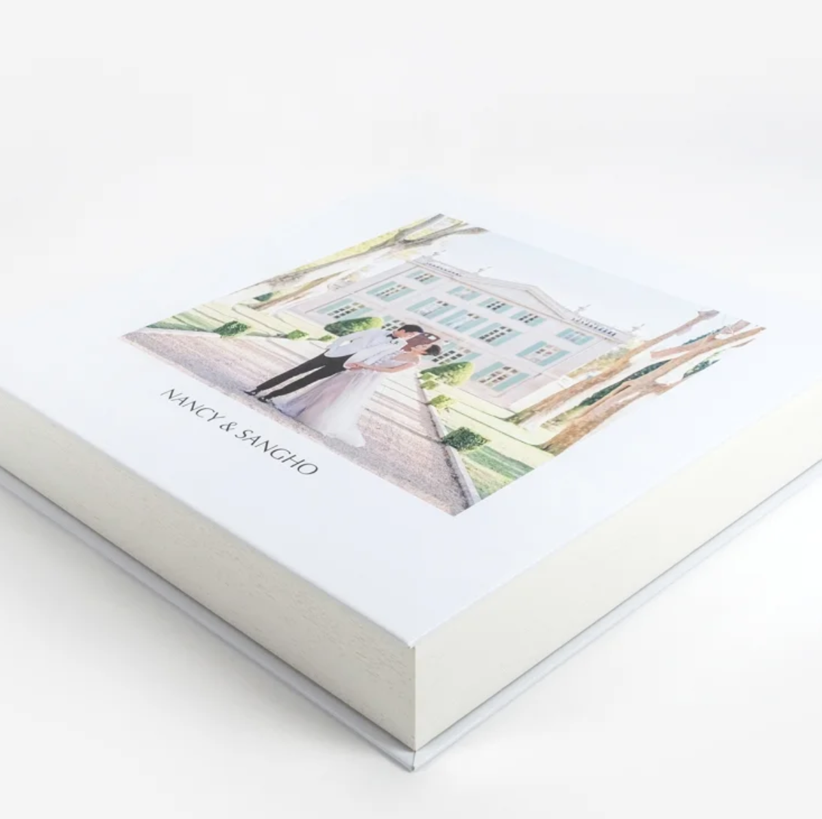 Linen / wooden photo album's box 119 eur, UV print 45 eur. Extra spread 39 eur