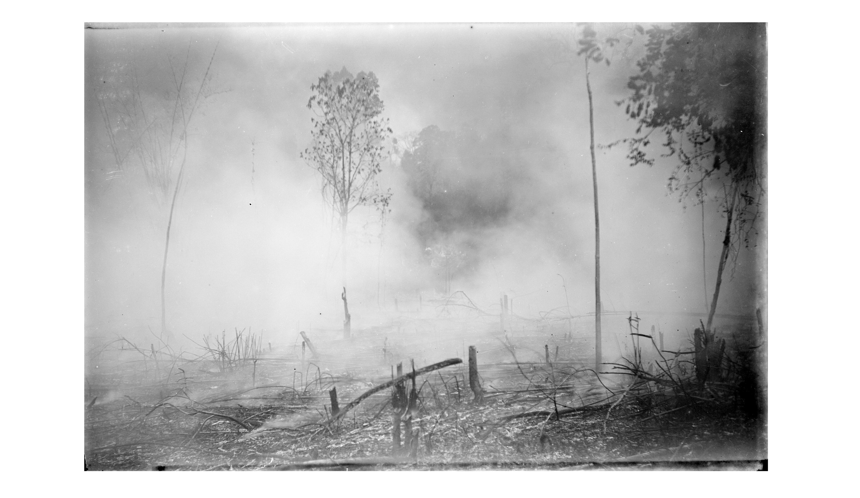 By comparison this photograph provides us with a documentary record of deliberate forest fires created at the time as local resistance against colonial teak production.