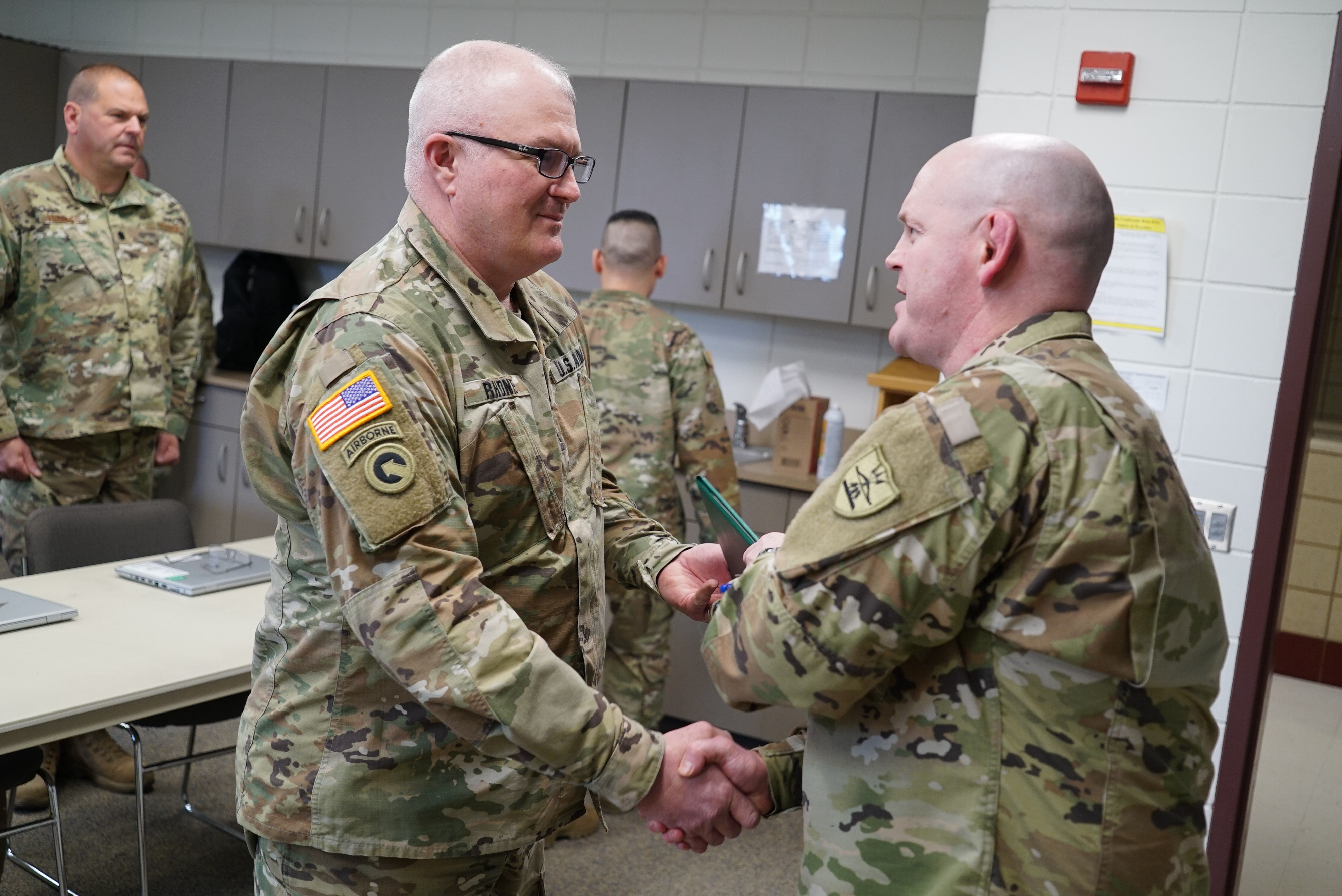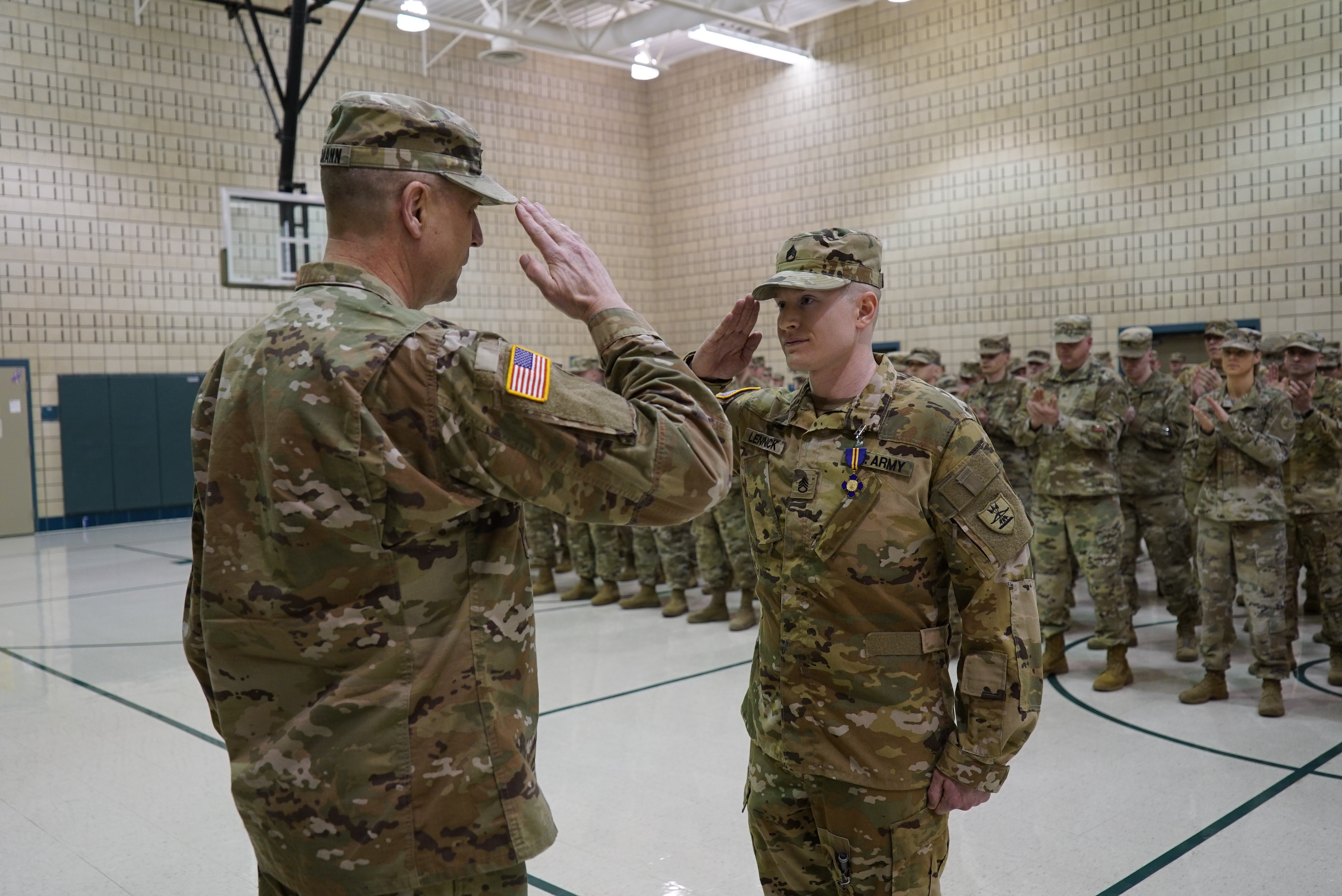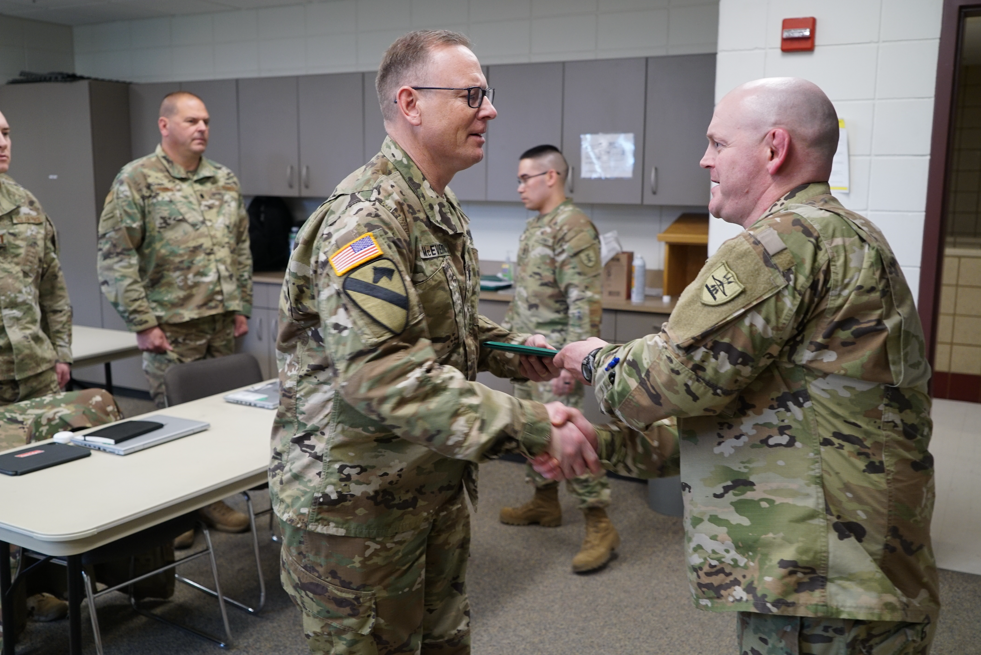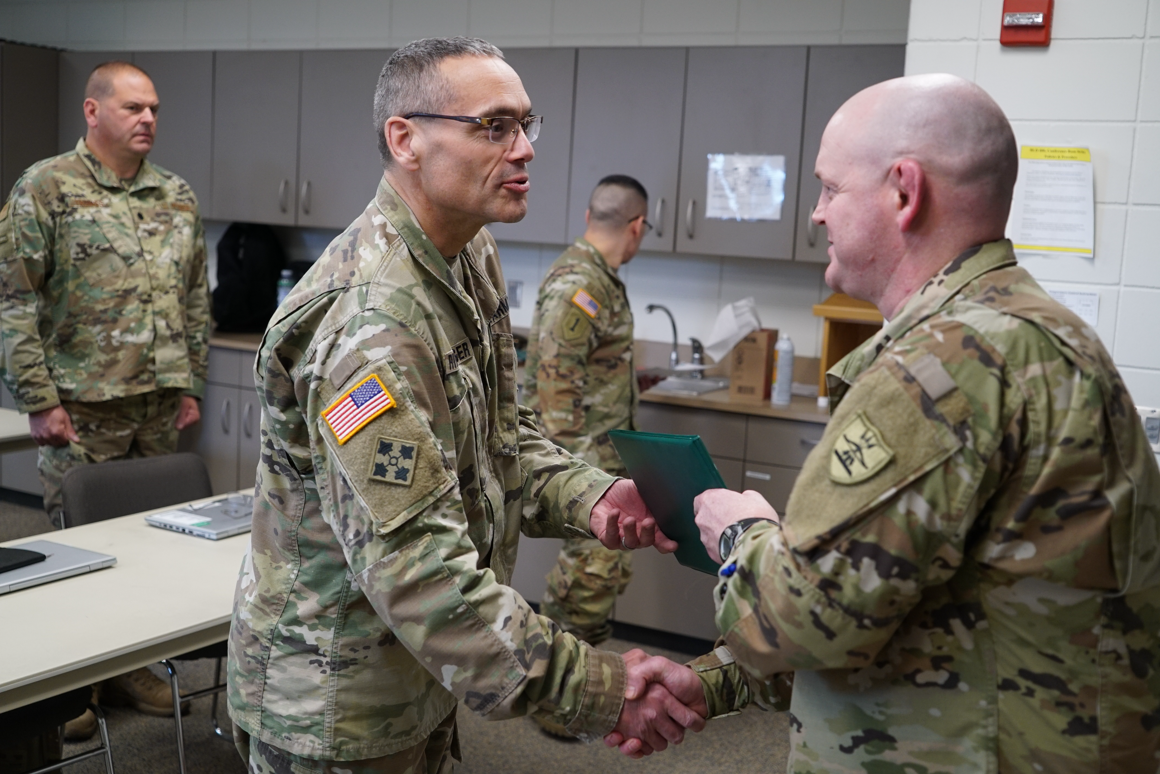 Four Soldiers from Joint Force Headquarters received recognition awards during the unit's inactive duty training, April 10, 2022. (National Guard story and photos by Sgt. 1st Class Charles Highland, N.D. National Guard Public Affairs Office)
