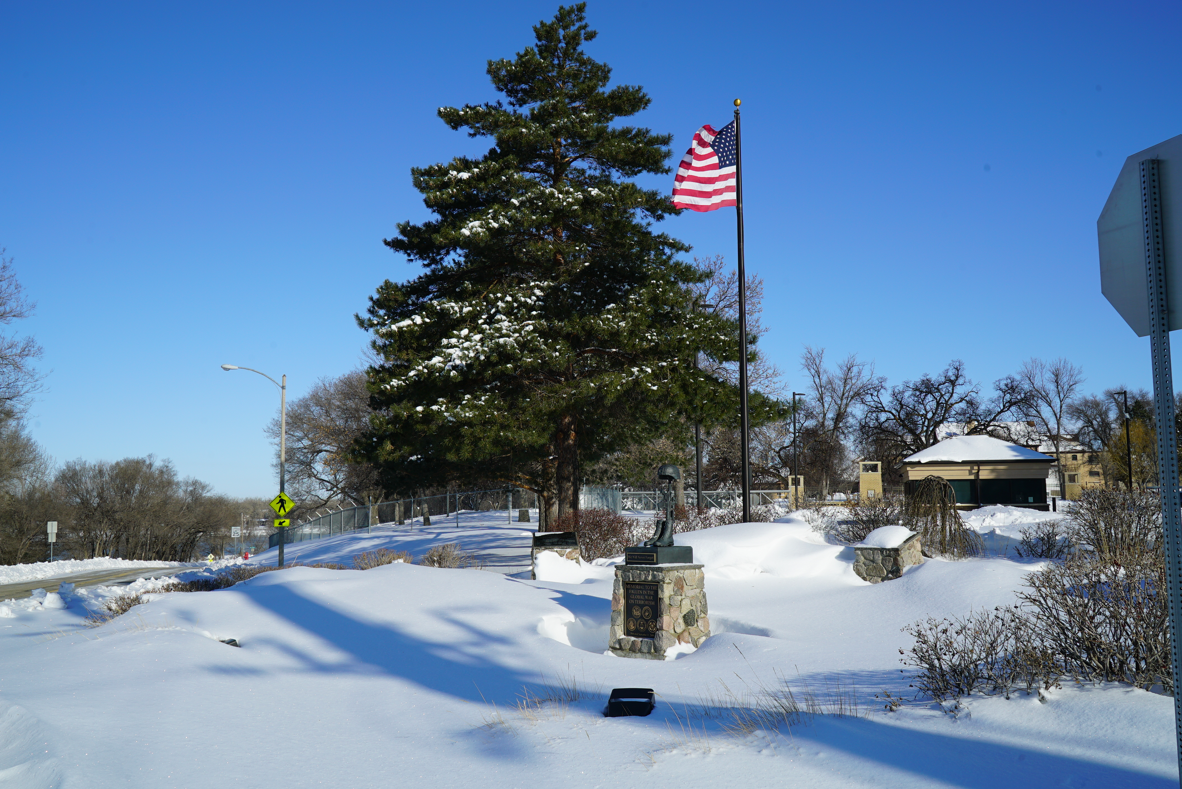 Snow lays all around the North Dakota Memorial to the Fallen in the Global War on Terrorism after a 3-day spring blizzard, Fraine Barracks, Bismarck, April 15, 2022. (National Guard photo by Sgt. 1st Class Charles Highland, N.D. National Guard Public Affairs Office)