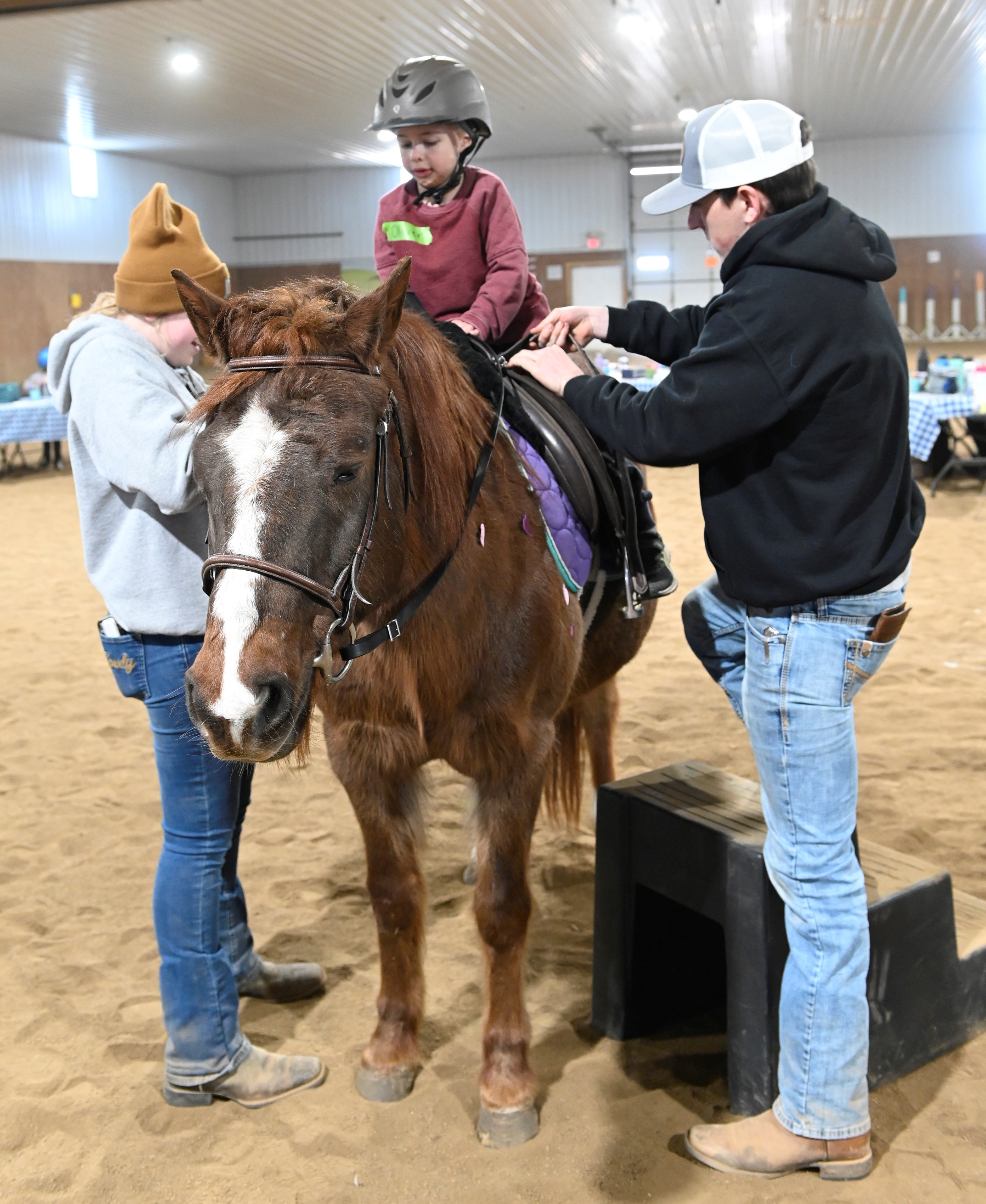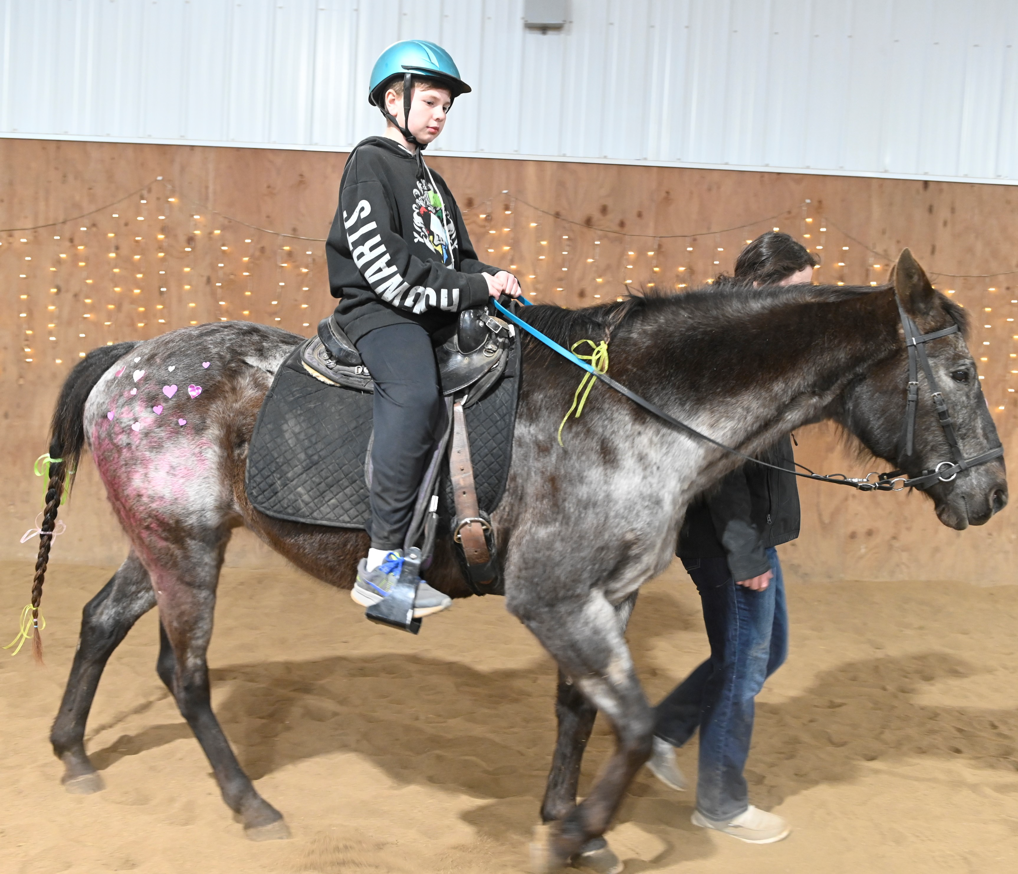 A child of an N.D. National Guard Soldier rides a horse, at Harmony Stables, Bismarck, April 9.