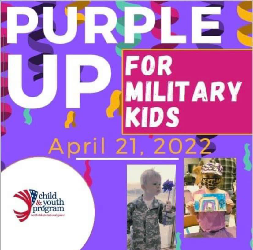 This year, North Dakota will celebrate Purple Up Day on April 21. Gov. Doug Burgum, commander-in-chief of the N.D. National Guard, is scheduled to sign a proclamation in recognition of the Month of the Military Child at the state capitol at 11:30 a.m. on that date. Follow the North Dakota National Guard Youth's Facebook page for more events for military children!