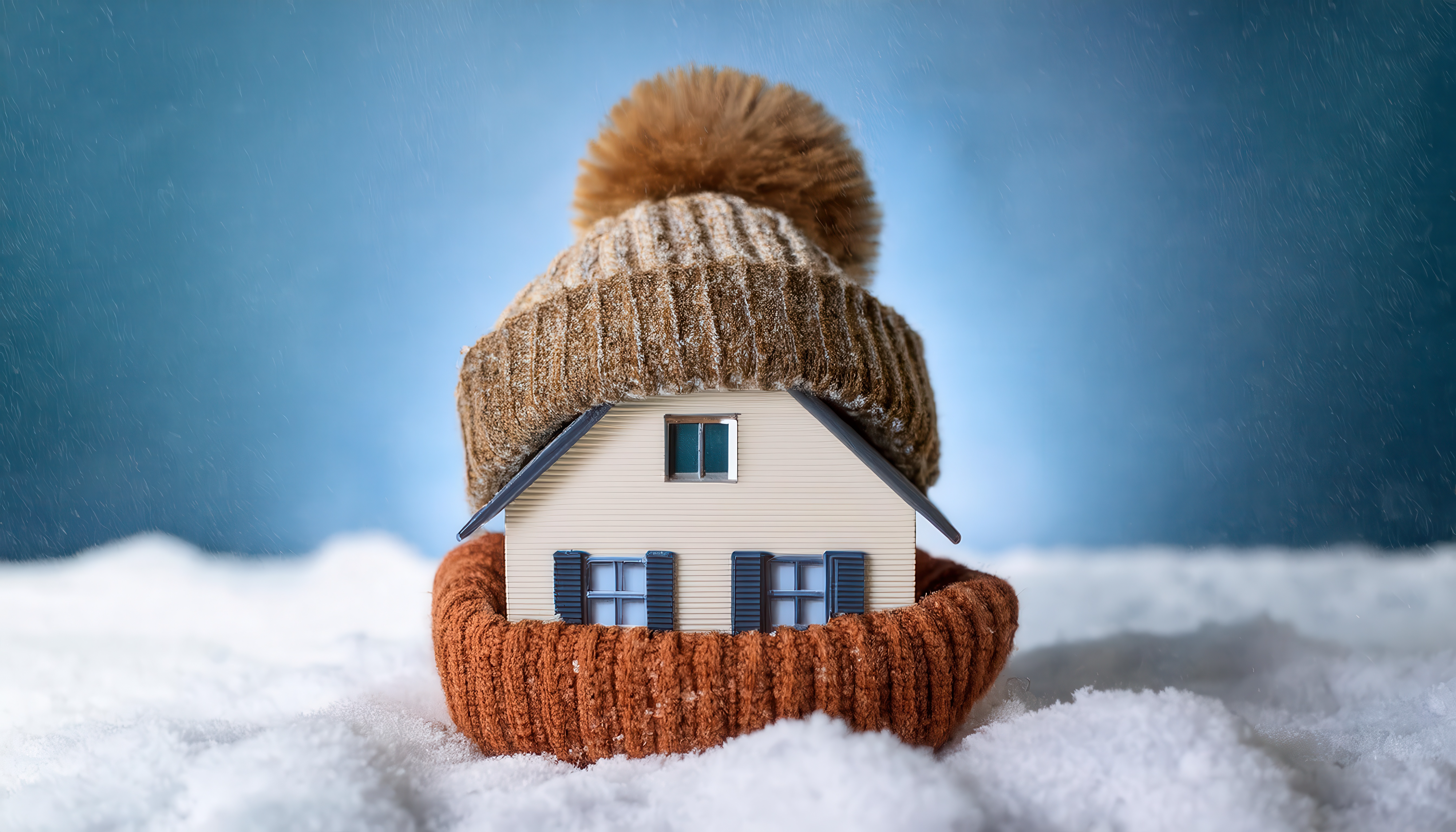 Created with images by Jammy - "Christmas course, Colorful holiday decorations and gifts with a call to action to "Enroll Now" on a bright blue background." • Proxima Studio - "Real estate agent is holding a house model" • Kate - "White snowberry branch with a bee on it. Close up of a poisonous flowers of a common snowberry (Symphoricarpos albus). Bee collecting nectar from snowberry flowers. Snowberry hedge." • Arthur - "Cozy Winter Home Protection Concept. Miniature House Dressed in Warm Knitted Hat and Scarf, Nestled in Snow, Symbolizing Energy Efficiency and Insulation During the Cold Winter Months"
